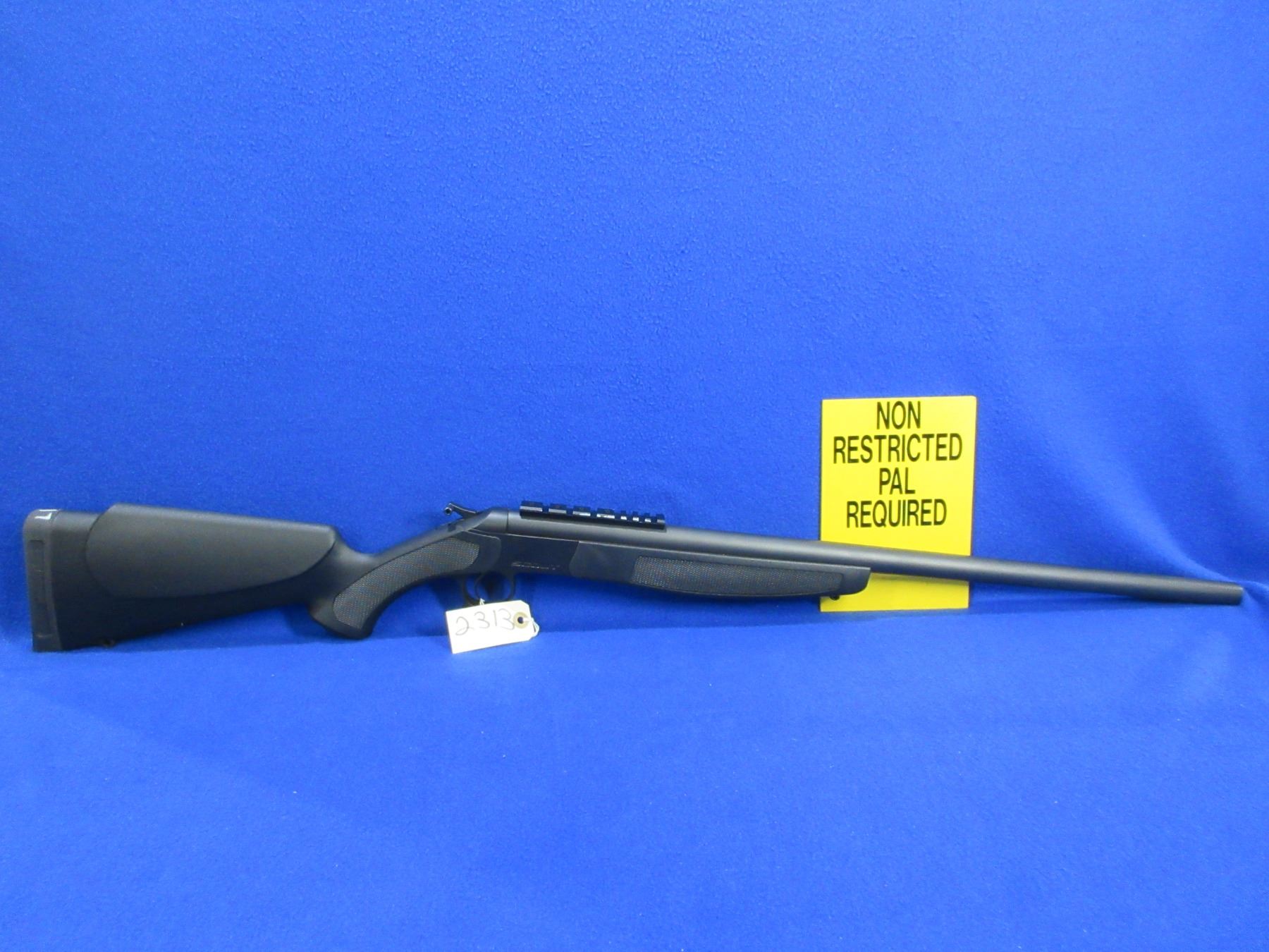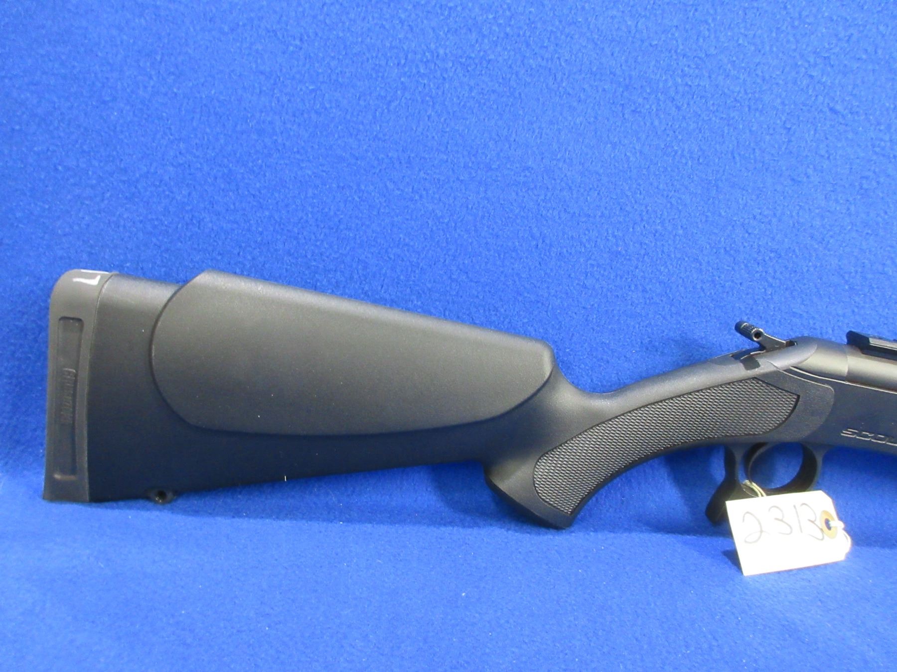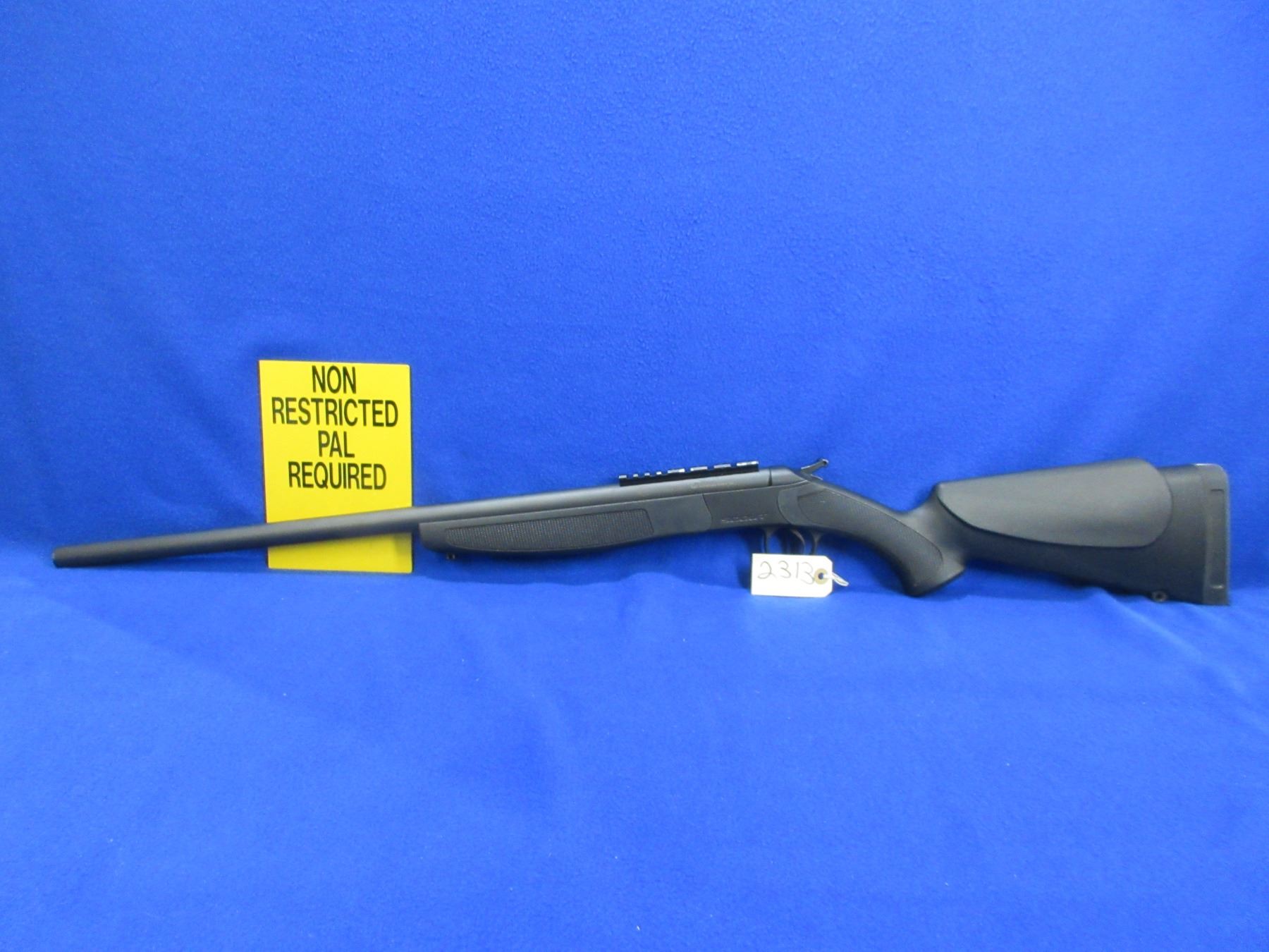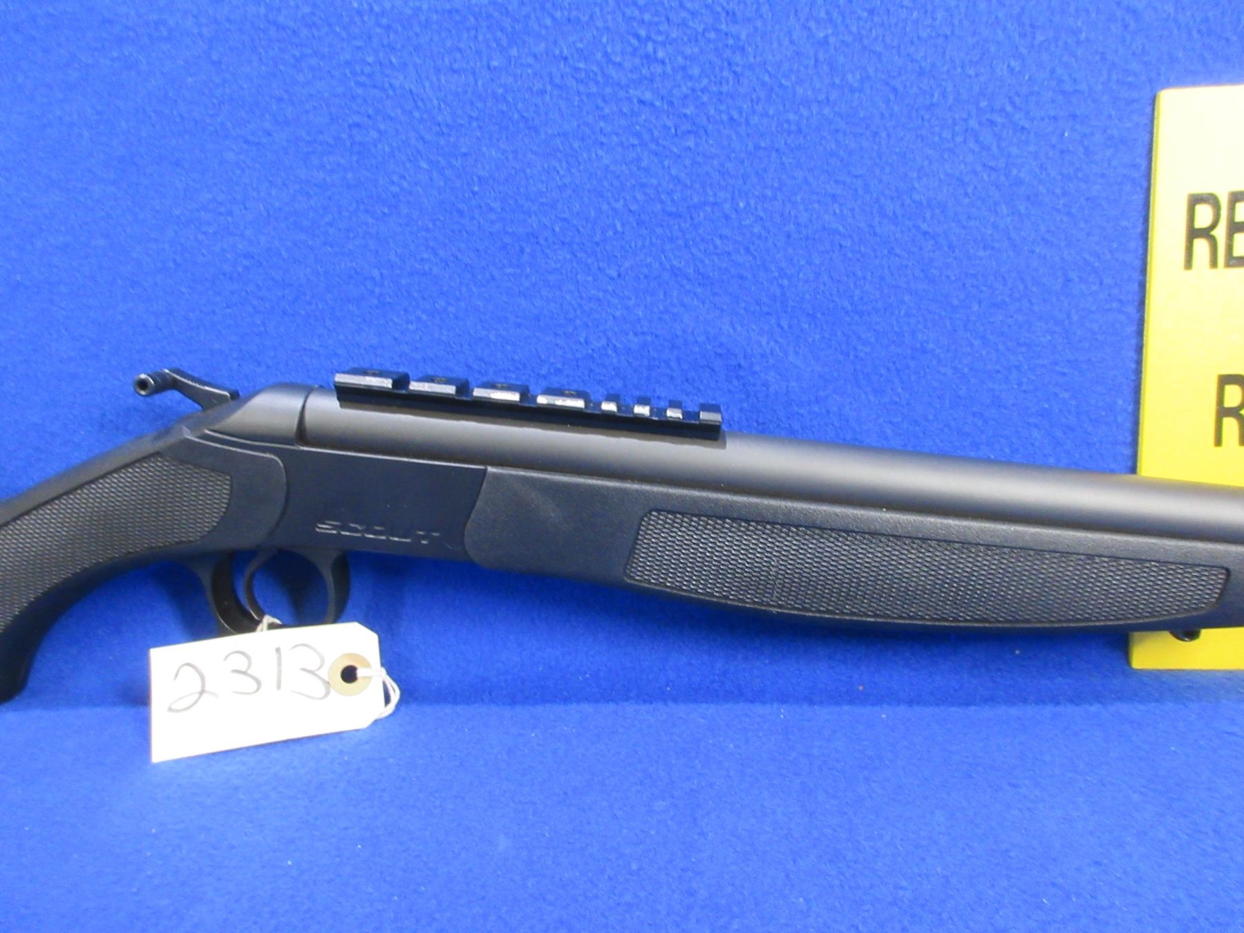 Non-Restricted - CVA Model Scout in 45-70 Gov't - This is a tip up single shot hammer rifle, action appears to be in very good working order. Barrel is 25", rifling is good to very good, matte black finish is good to very good, has no sights but has Picatinny rail, synthetic stock is good to very good, synthetic forearm is good to very good, length of pull is 14 1/4", rubber recoil pad good, comes with swivel studs. Ser # 61-06-092553-23