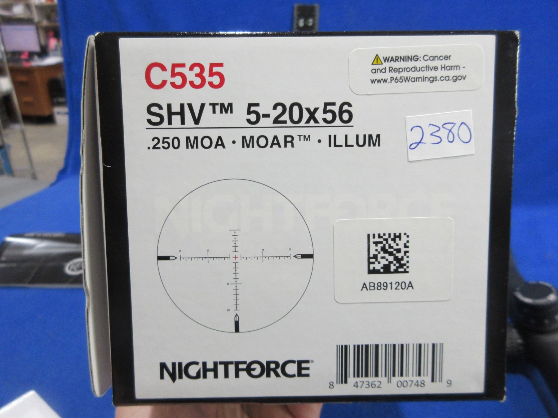 Lot 2380 Nightforce SHV 5-20x56 SFP Illuminated Scope - 30MM Tube