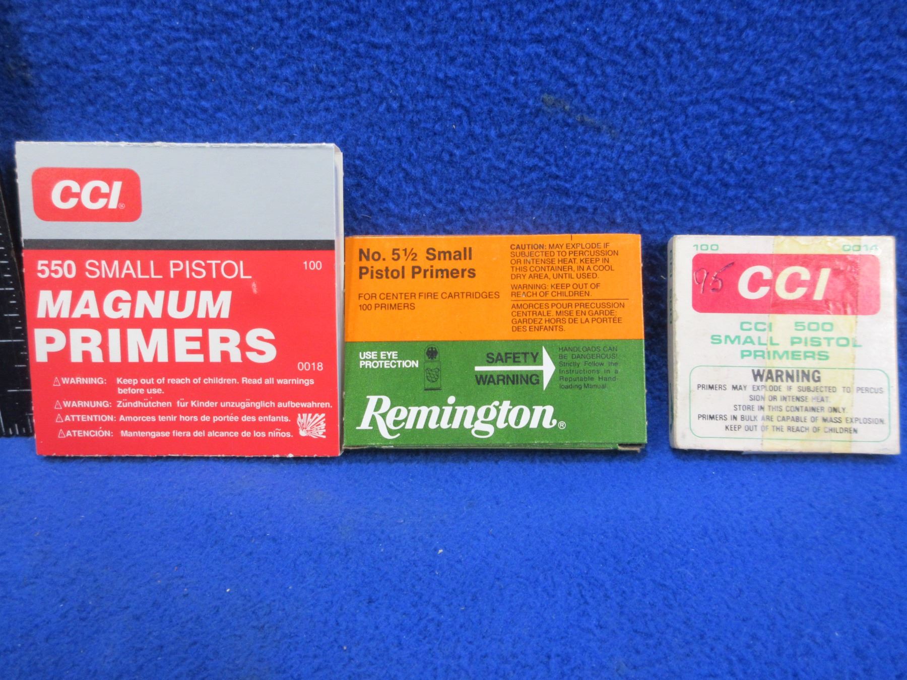 CCI & Remington Small Pistol Primers (Pick Up or Ship by UPS Only) - Box of 100 (CCI 550 Magnum), Box of 95 (CCI 500), Box of 100 (Remington No. 5 1/2)