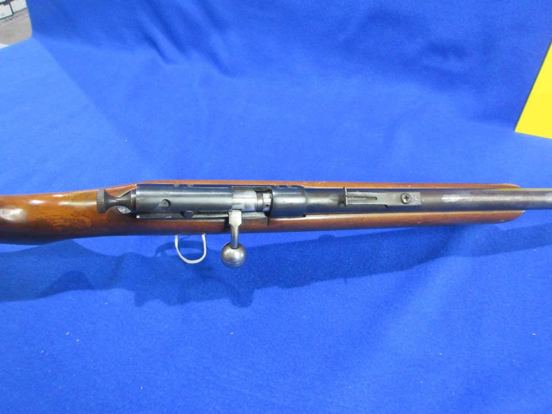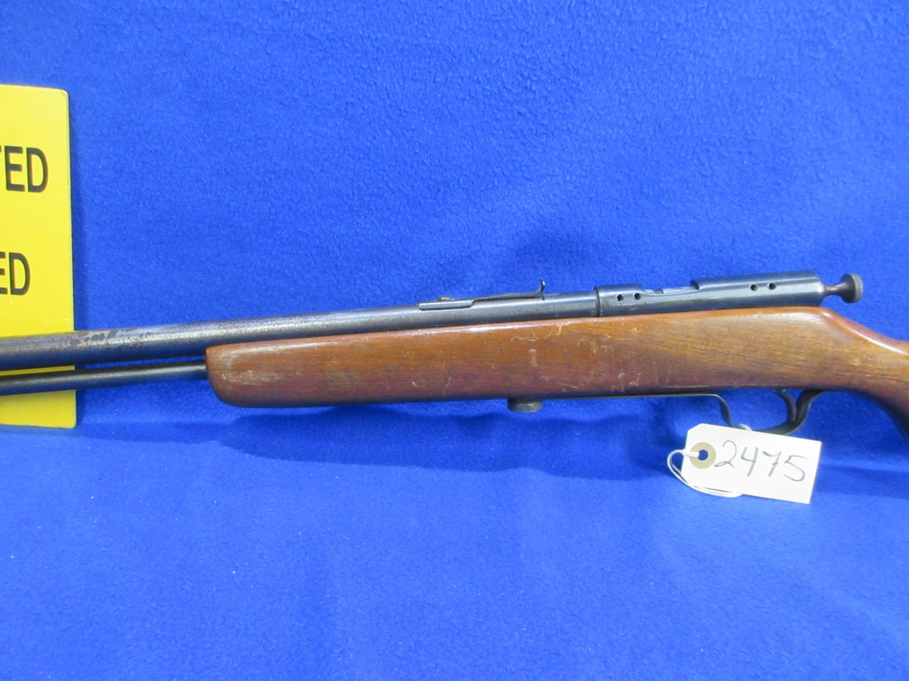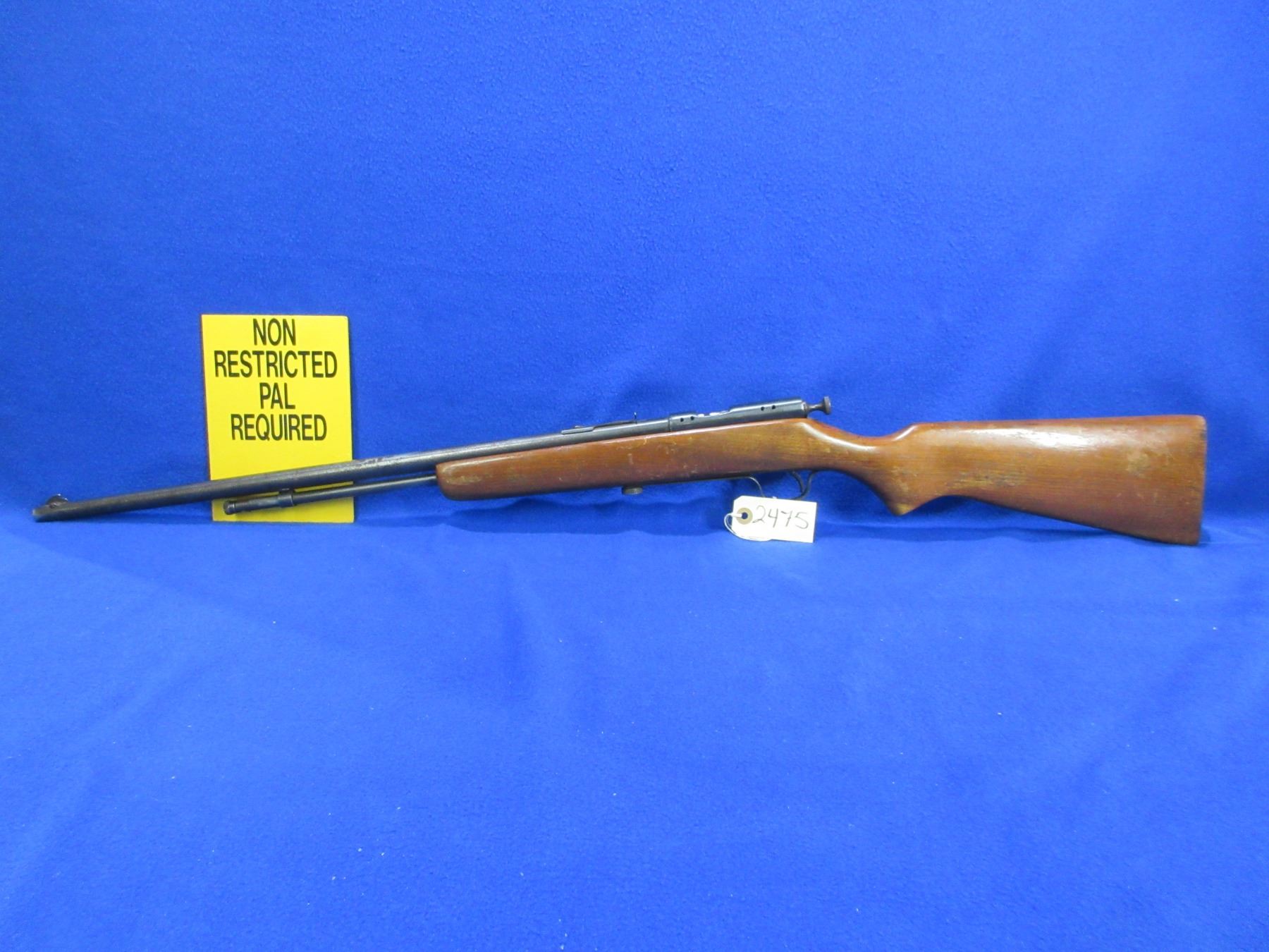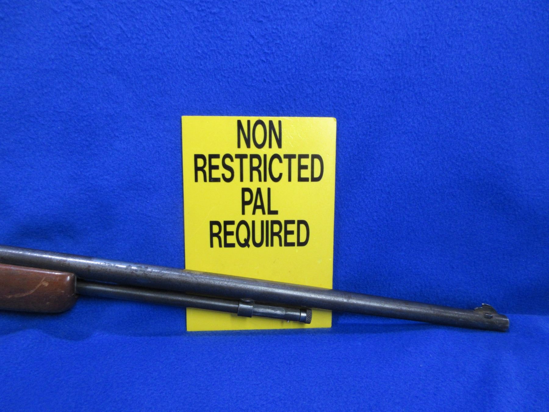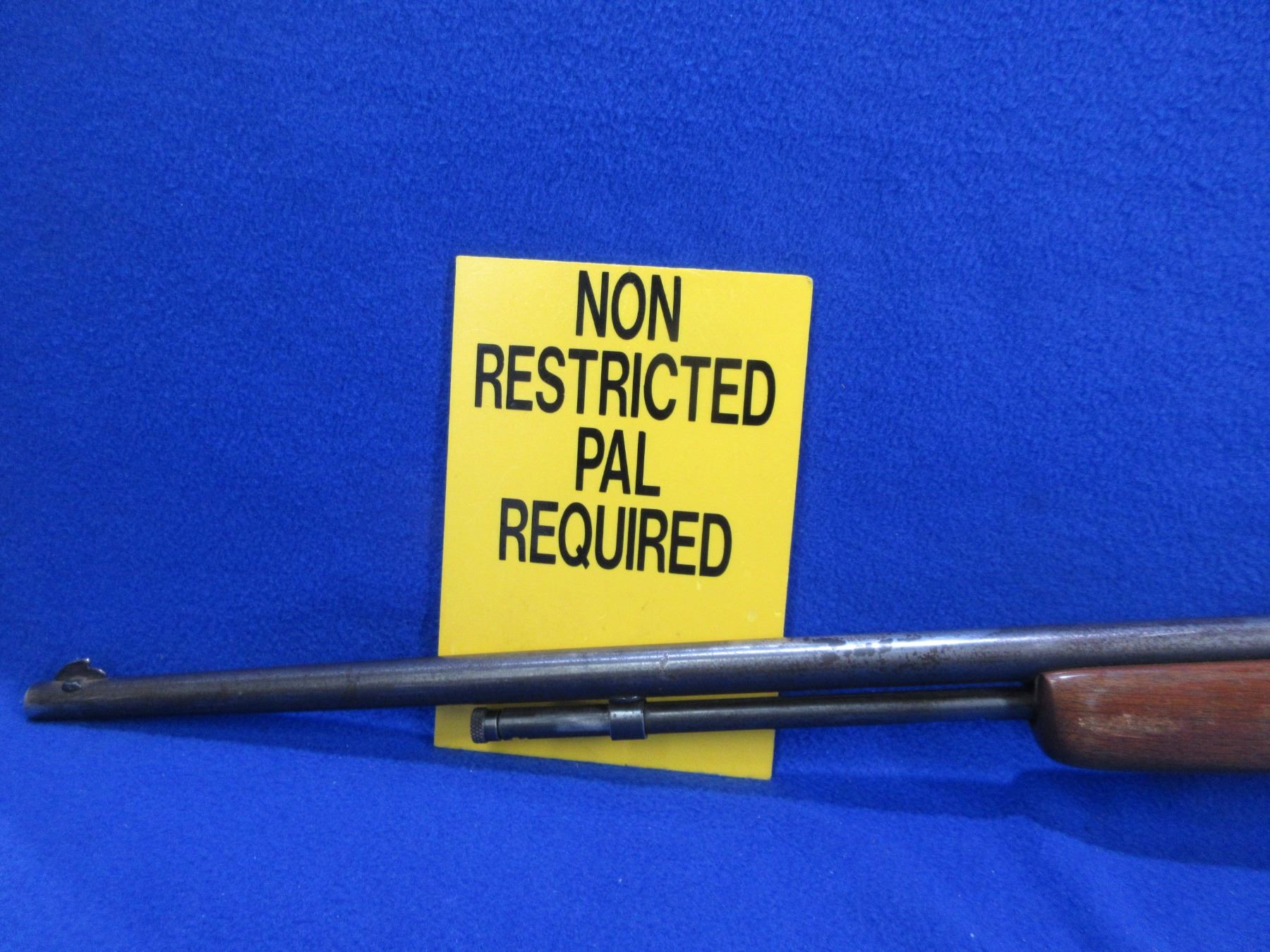 Non-Restricted - Cooey Model 60 Repeater in 22 S/L/LR - This is a bolt action rifle with tube magazine, action appears to be in good working order. Barrel is 24", rifling is good to very good, bluing is speckled with some pitting, has both sights but rear ramp missing, stock is good with usage marks, length of pull is 13 3/4", butt plate missing. Ser # None