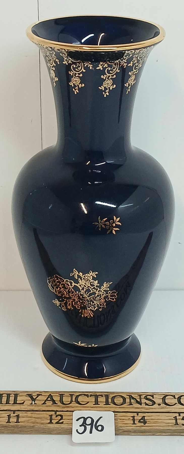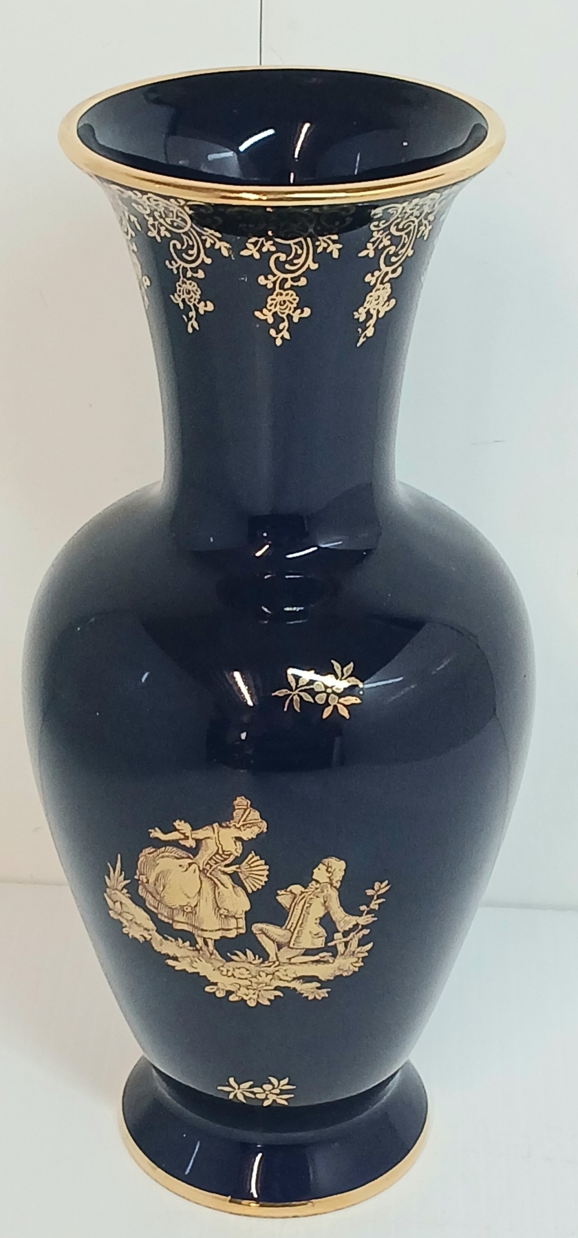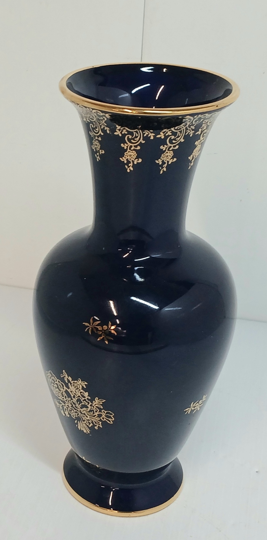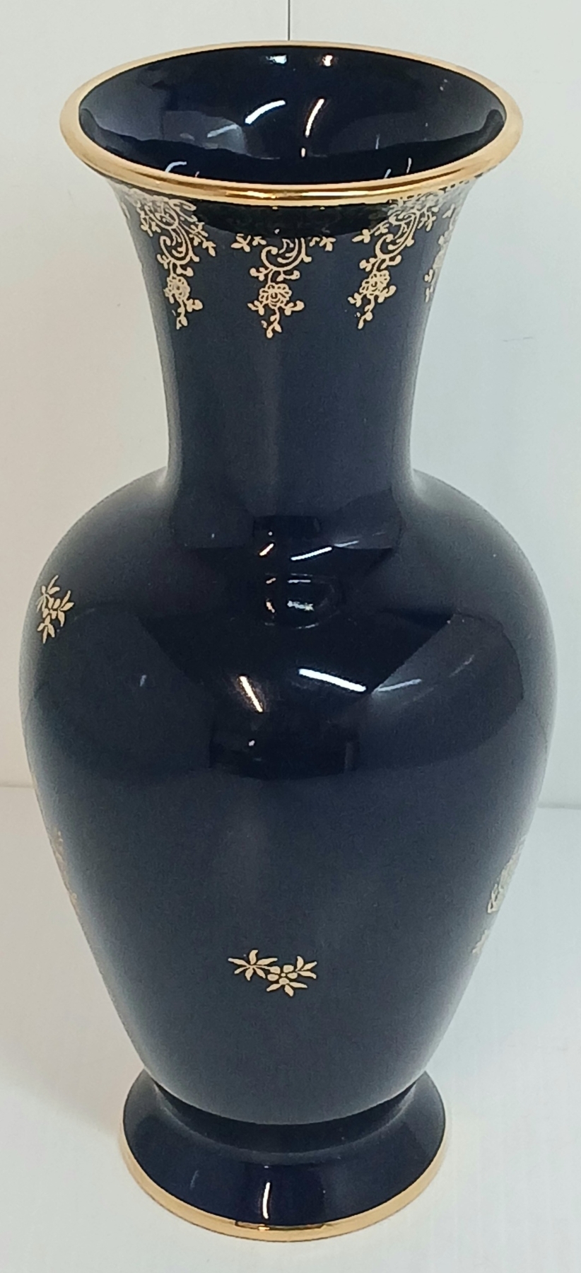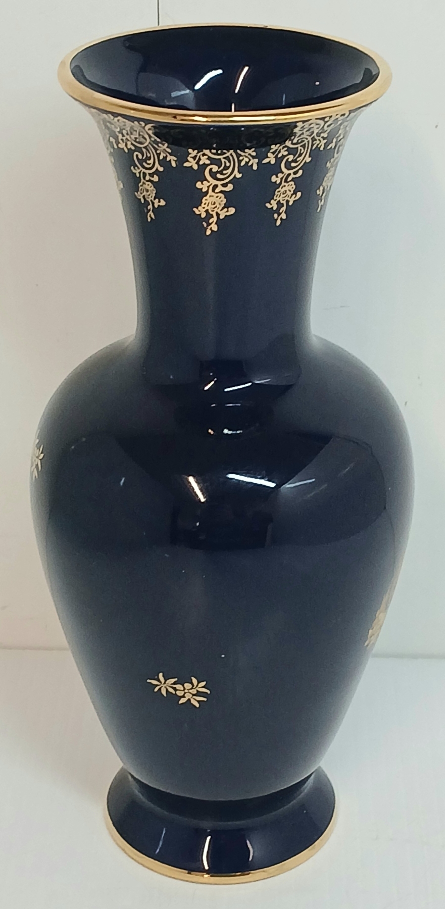Lot 396 LIMOGES COBALT BLUE & 22K GOLD DETAILED PORCELAIN VASE - CIRCA 1940s - 1960s