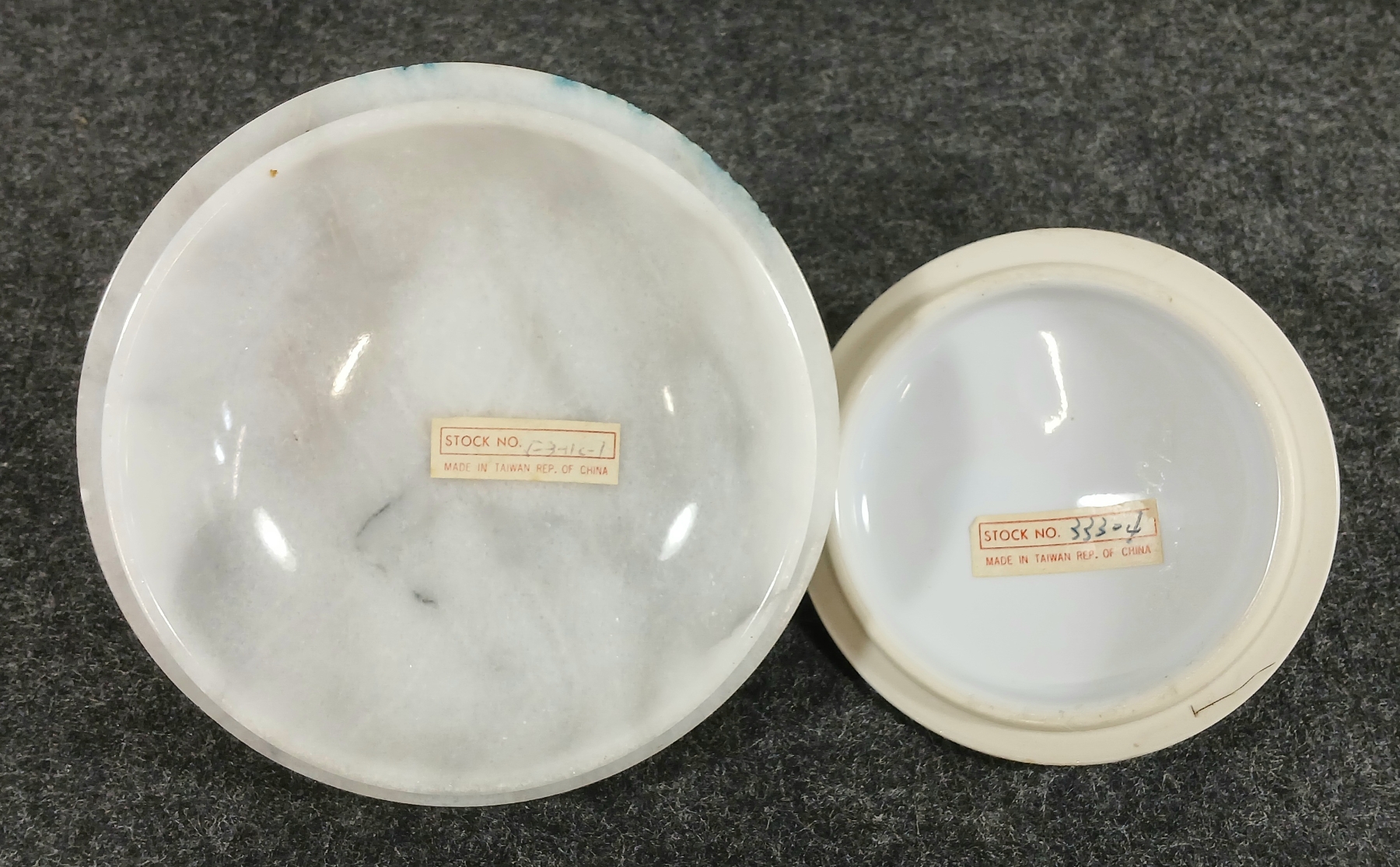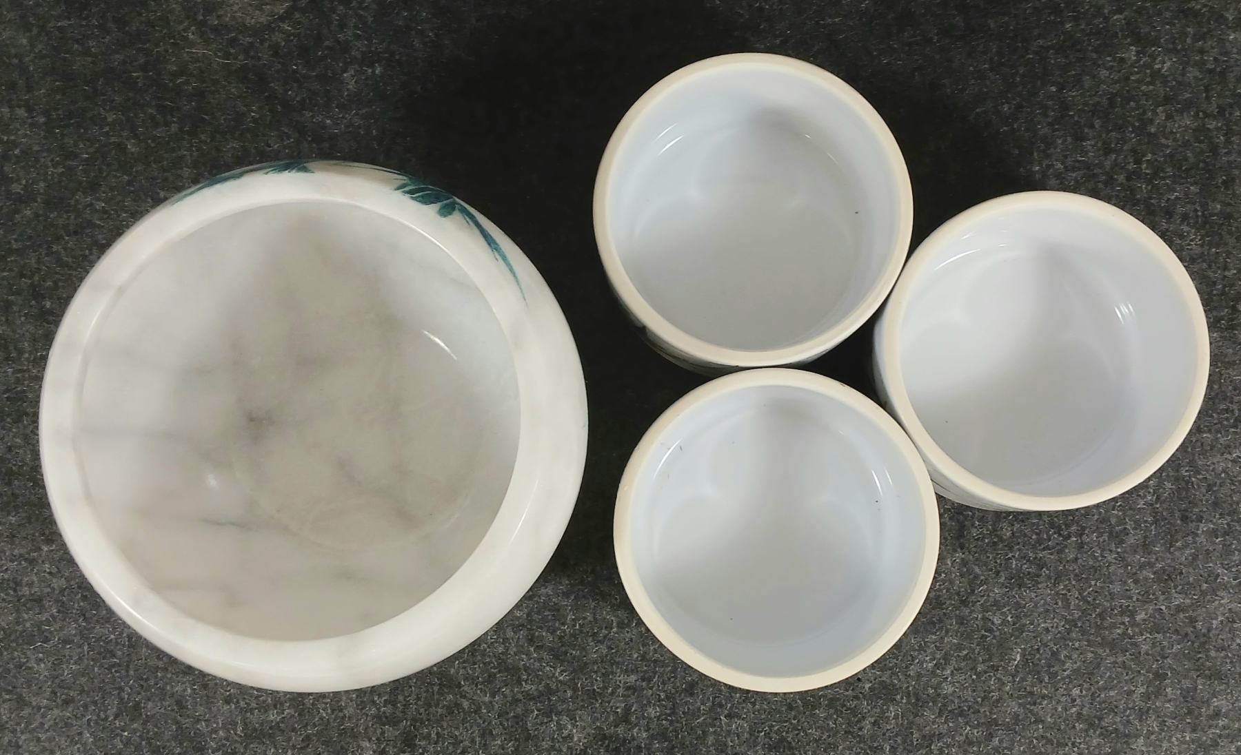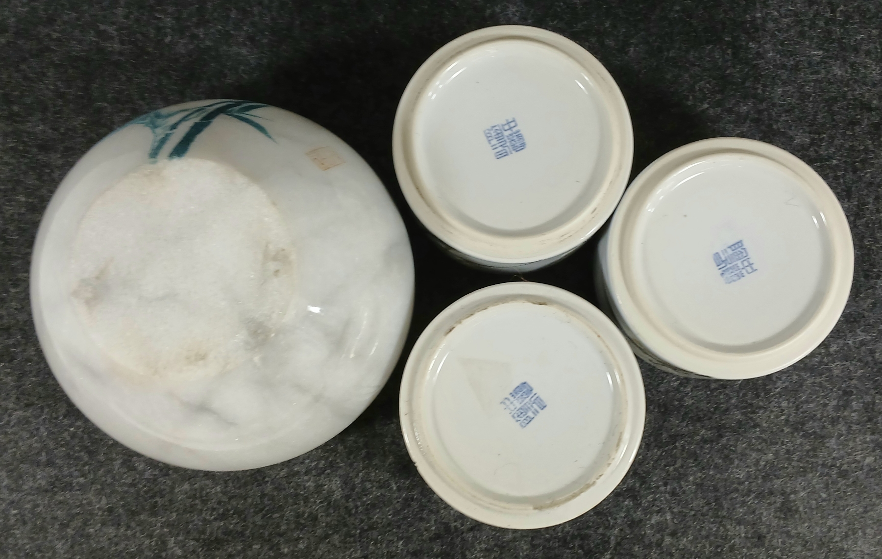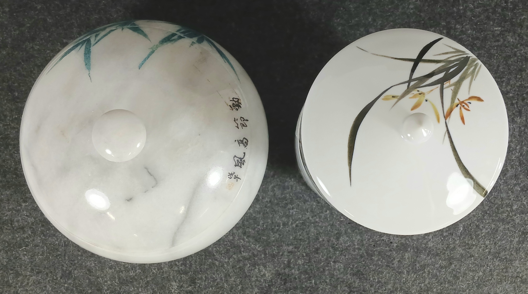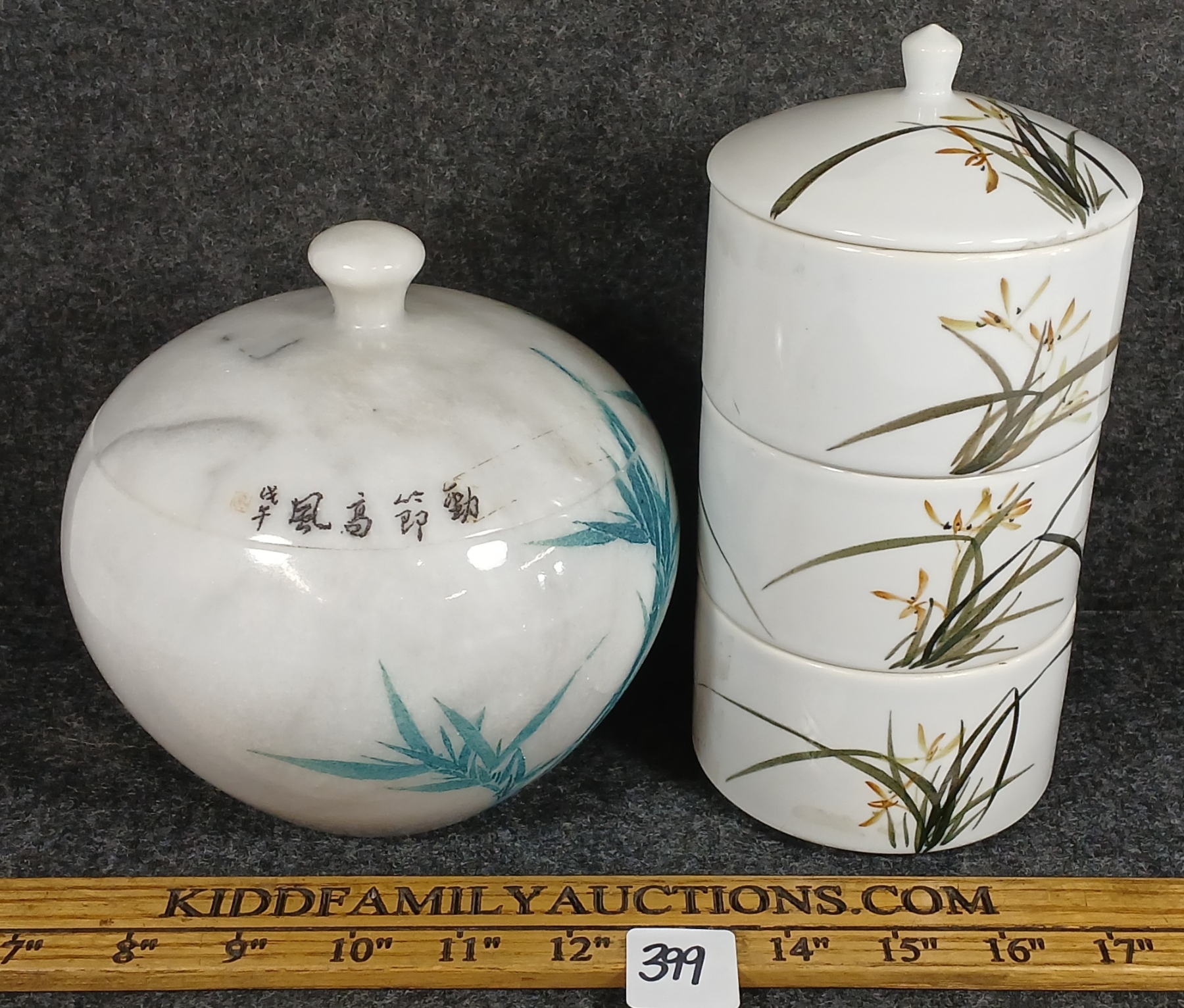 Lot 399 LOT OF 2 - MARBLE LIDDED JAR & 3-TIER PORCELAIN LIDDED CANNISTER SET