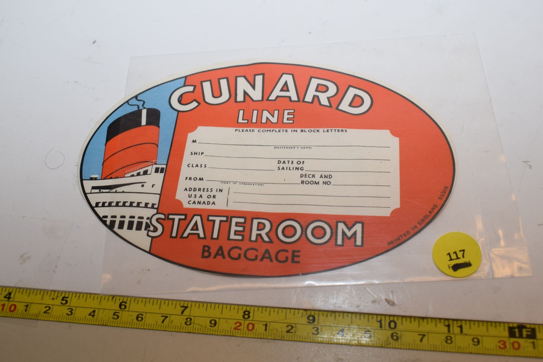 Lot 117 Steamship Baggage Label