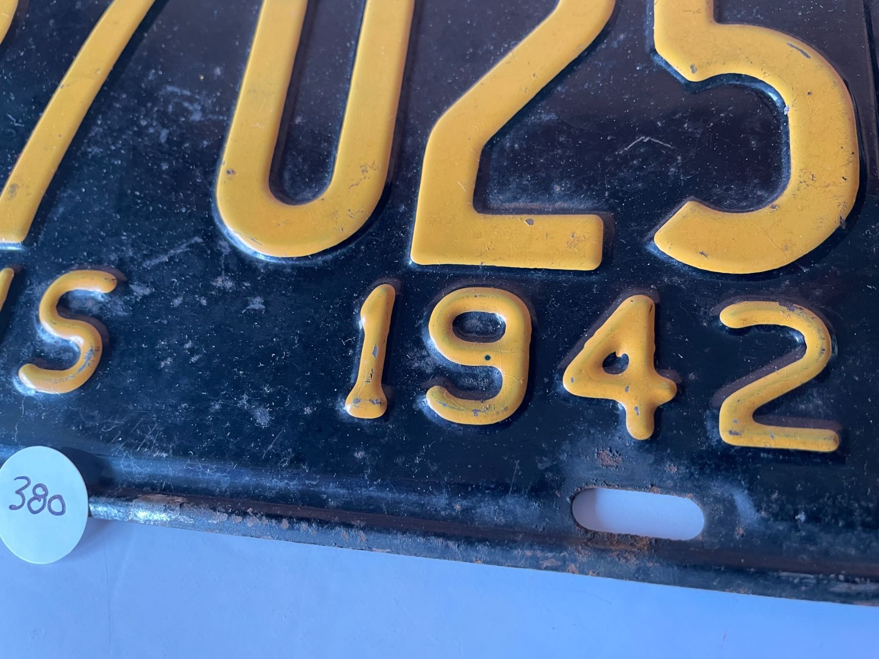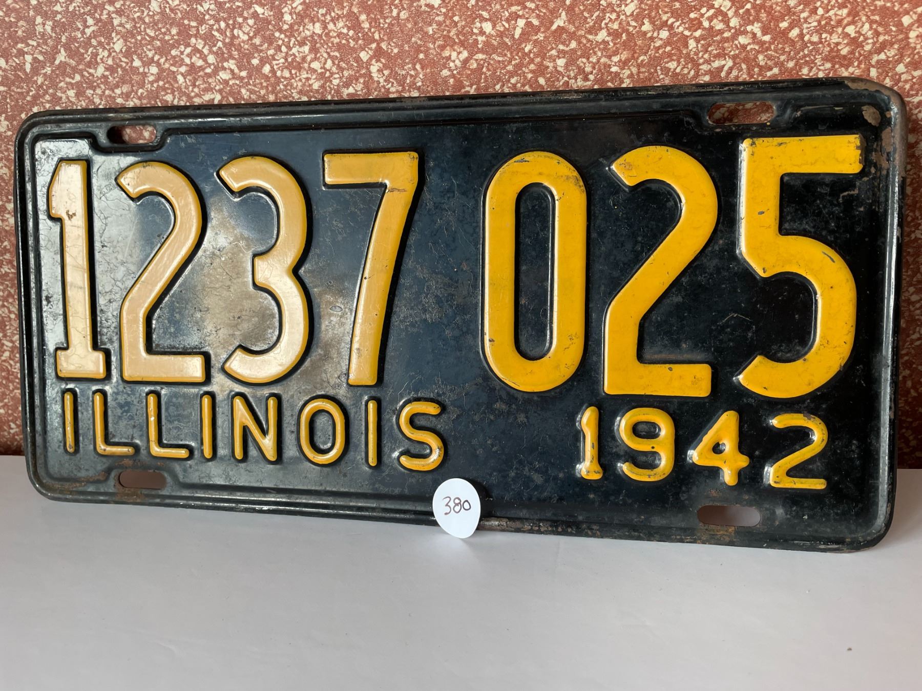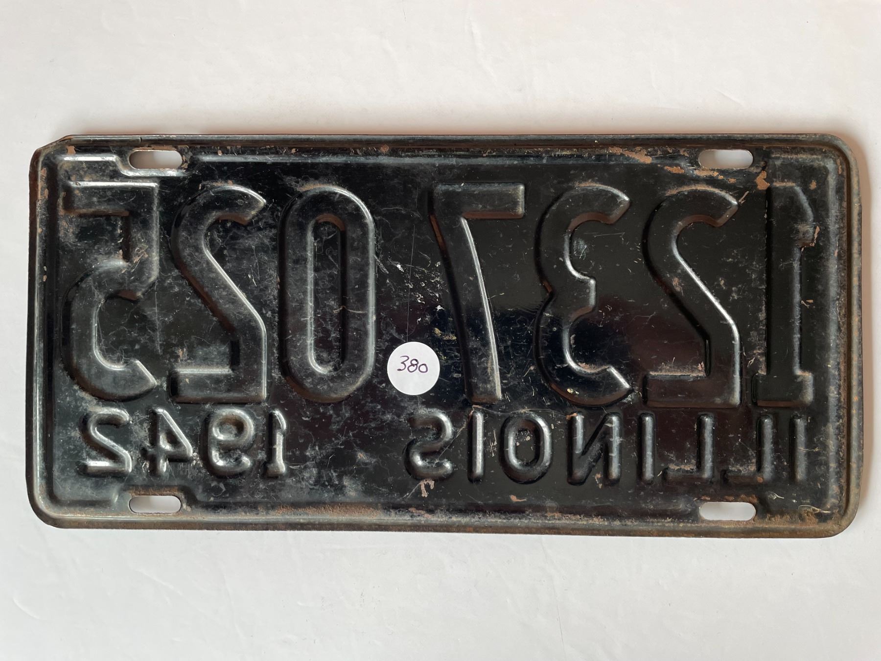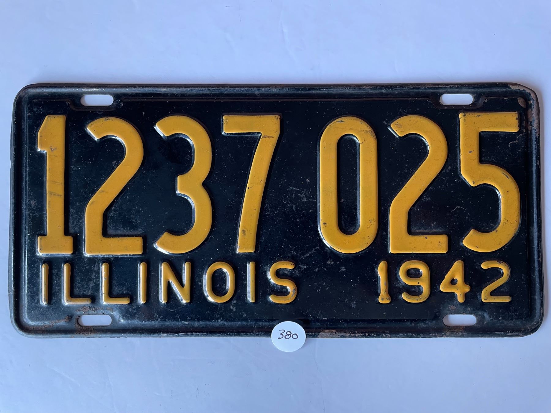 Lot 380 Original 1942 Illinois License Plate WW2