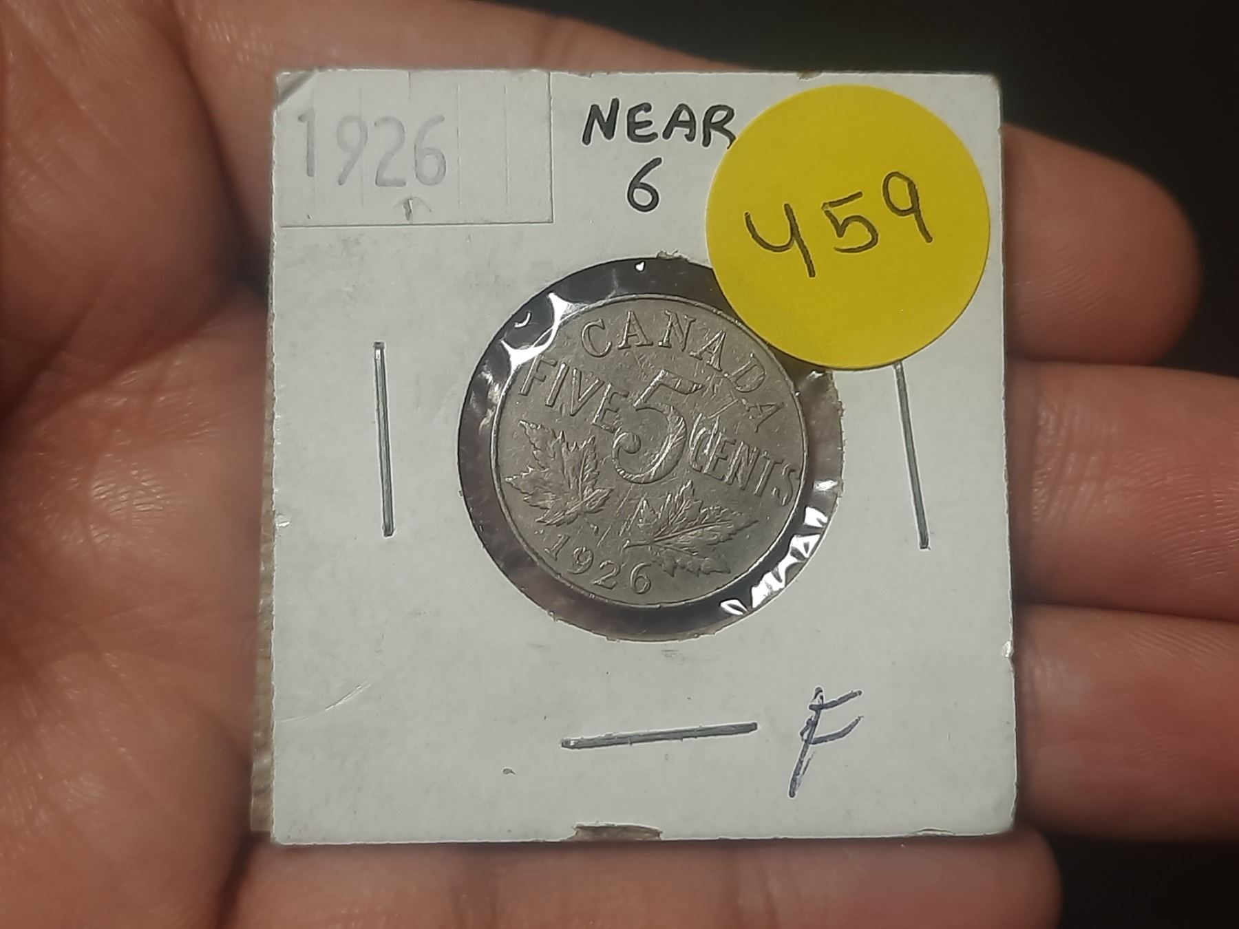Lot 459 1926 Near 6 Canada 5 Cent Coin.