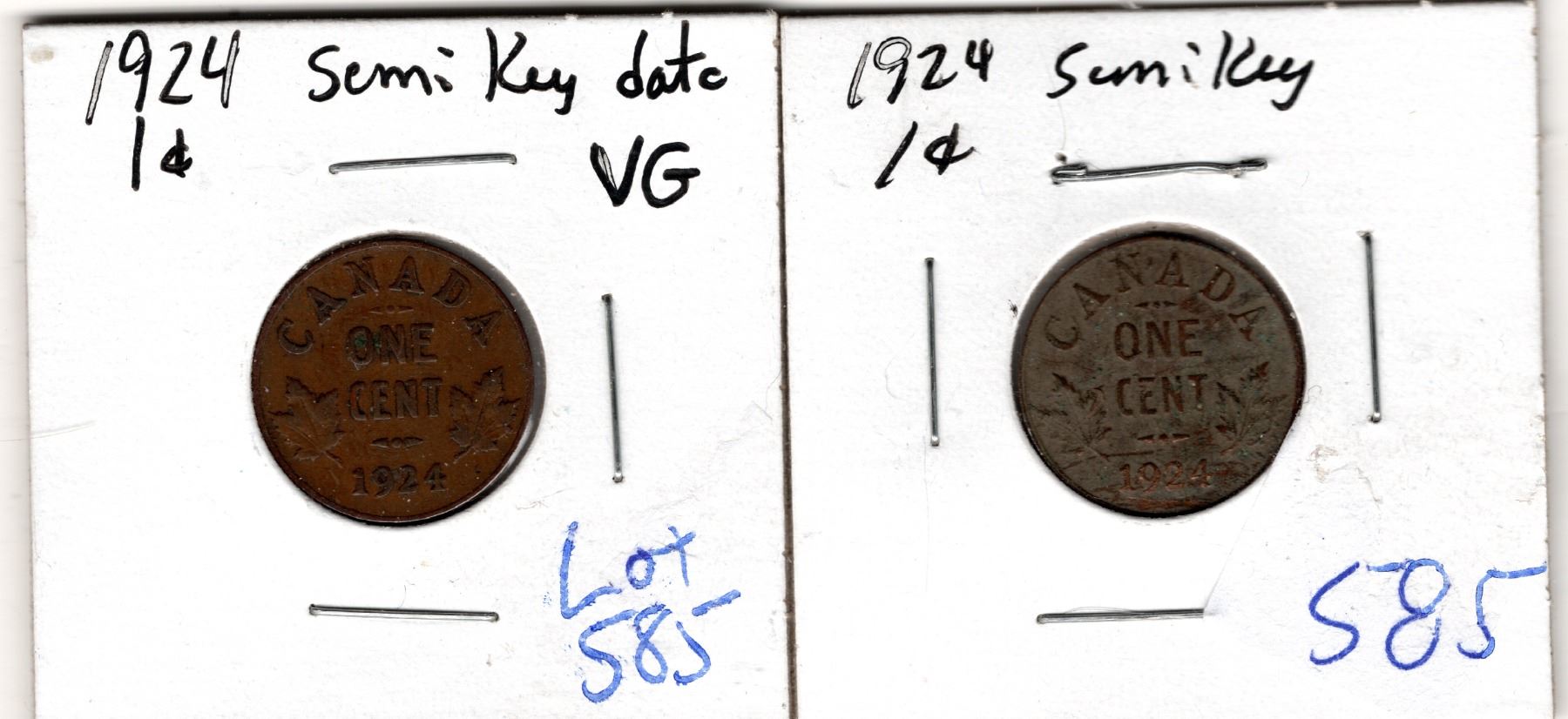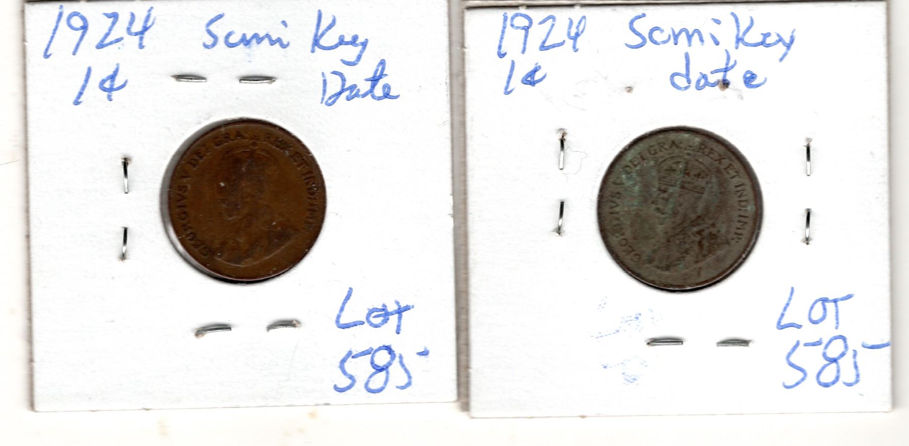 Lot 585 2-1924 ONE CENT SEMI KEY DATE