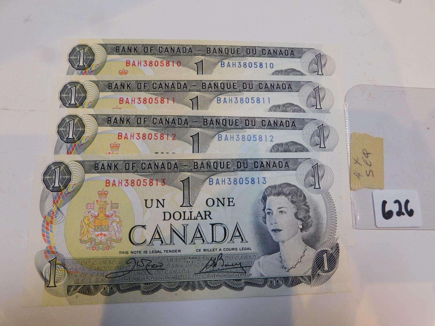 Lot 626 4-CONSECUTIVE 1973 ONE DOLLAR BILLS UNC