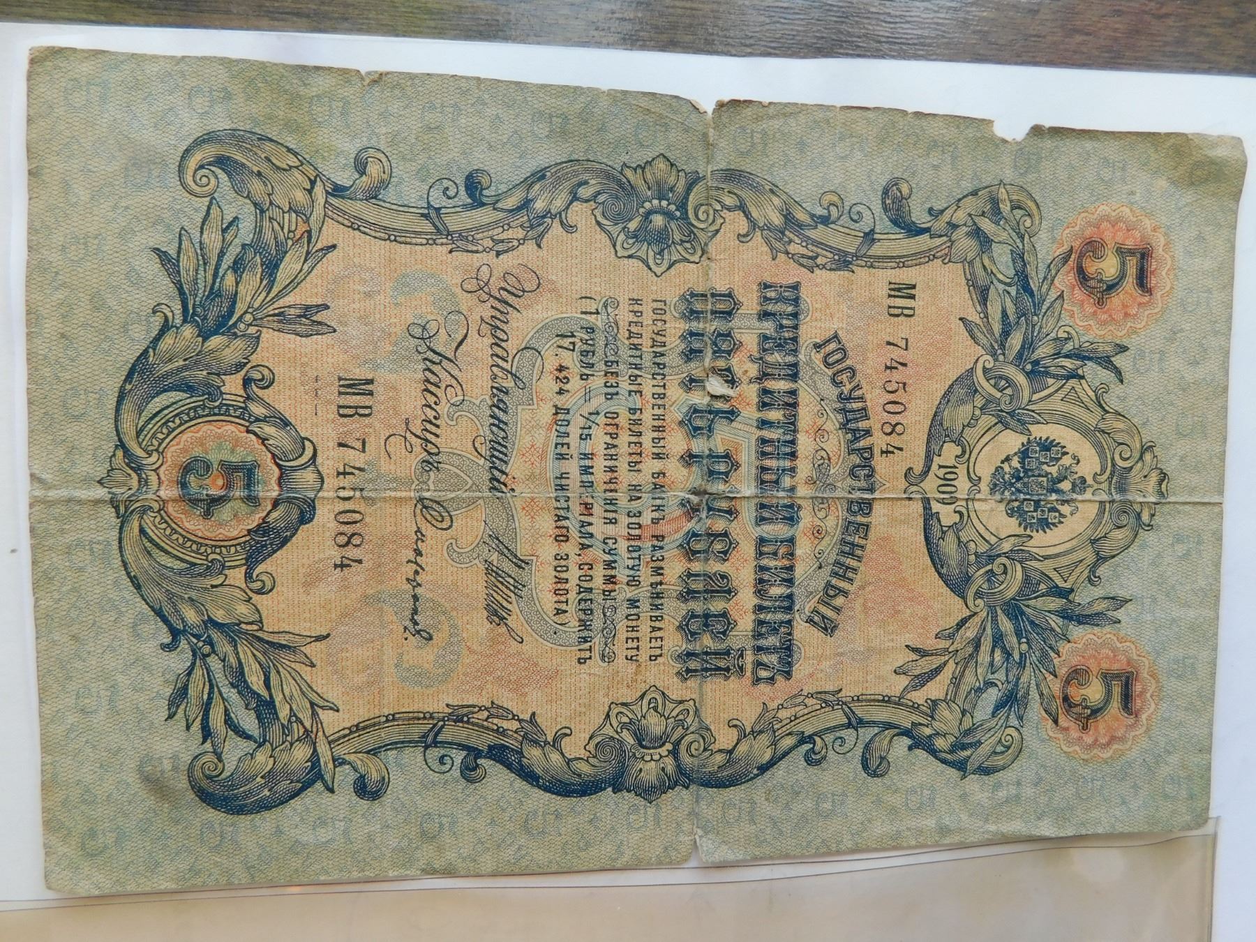 1909 RUSSIAN 5 RUBLES BILL