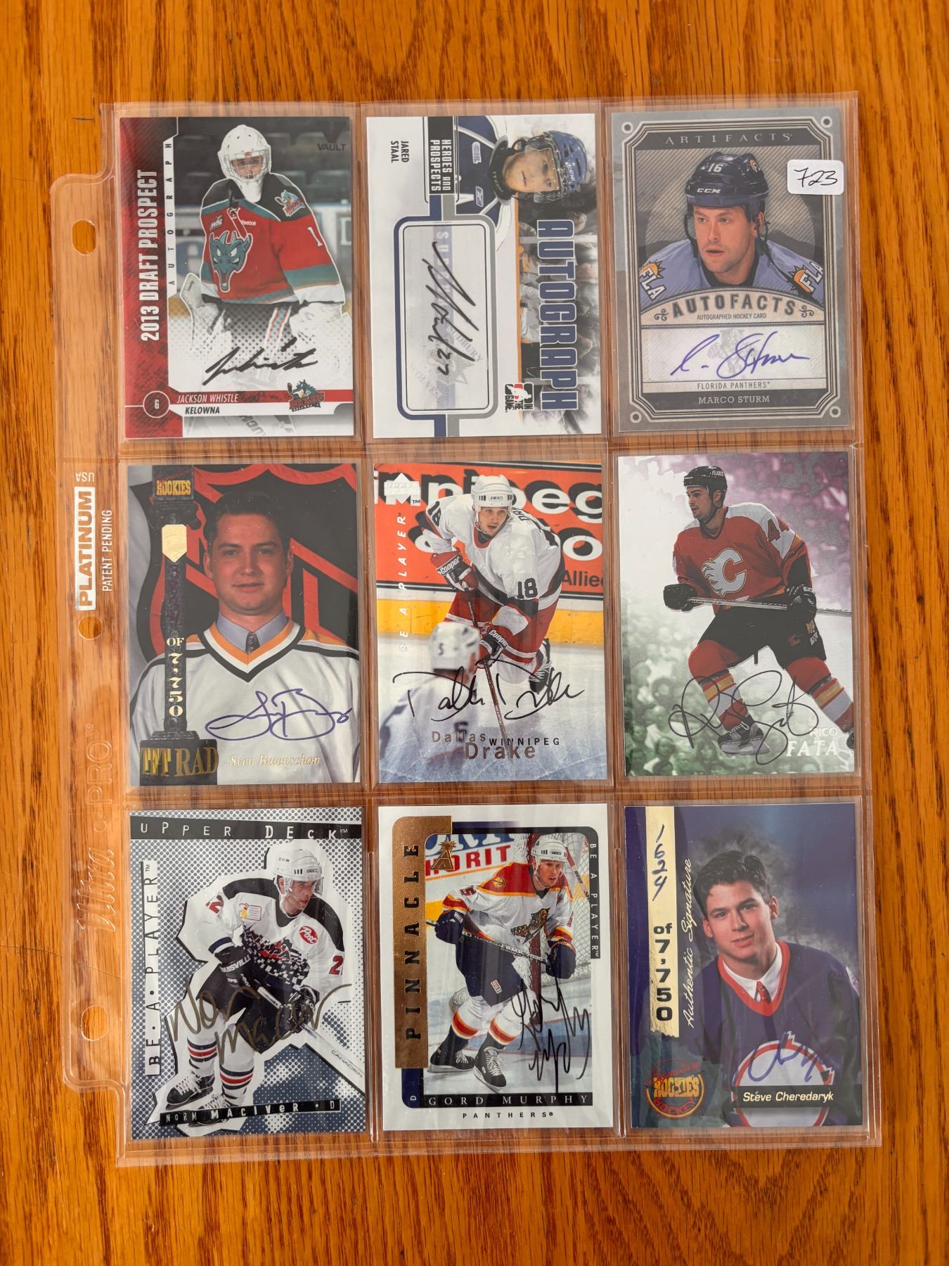 Autographed Hockey Cards - 1 Sheet (9 Hockey Cards)