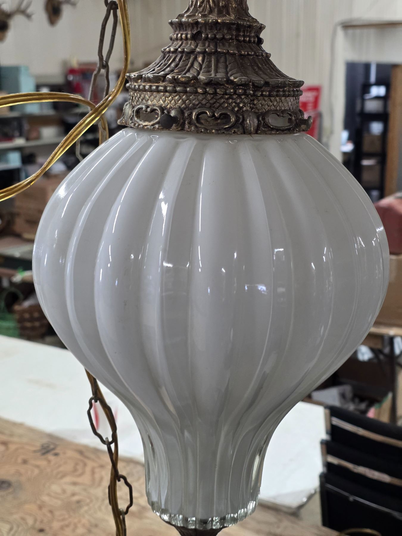 Lot 907 Art deco glass swag ceiling lamp 18"H- untested
