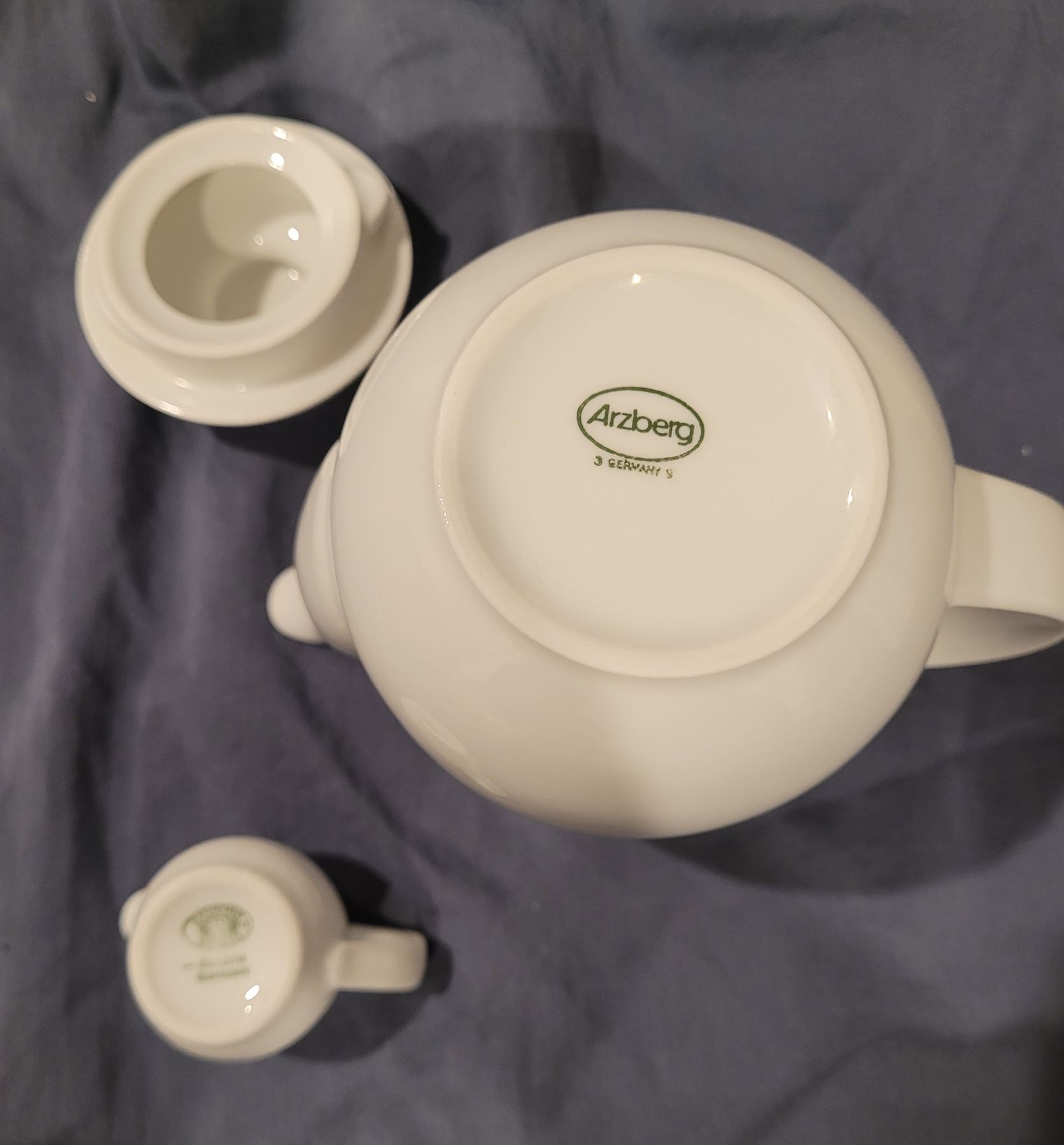Lot 978 Individual coffee/tea/hot chocolate 4 1/2" tall pot with individual cream pitcher-made in Germany