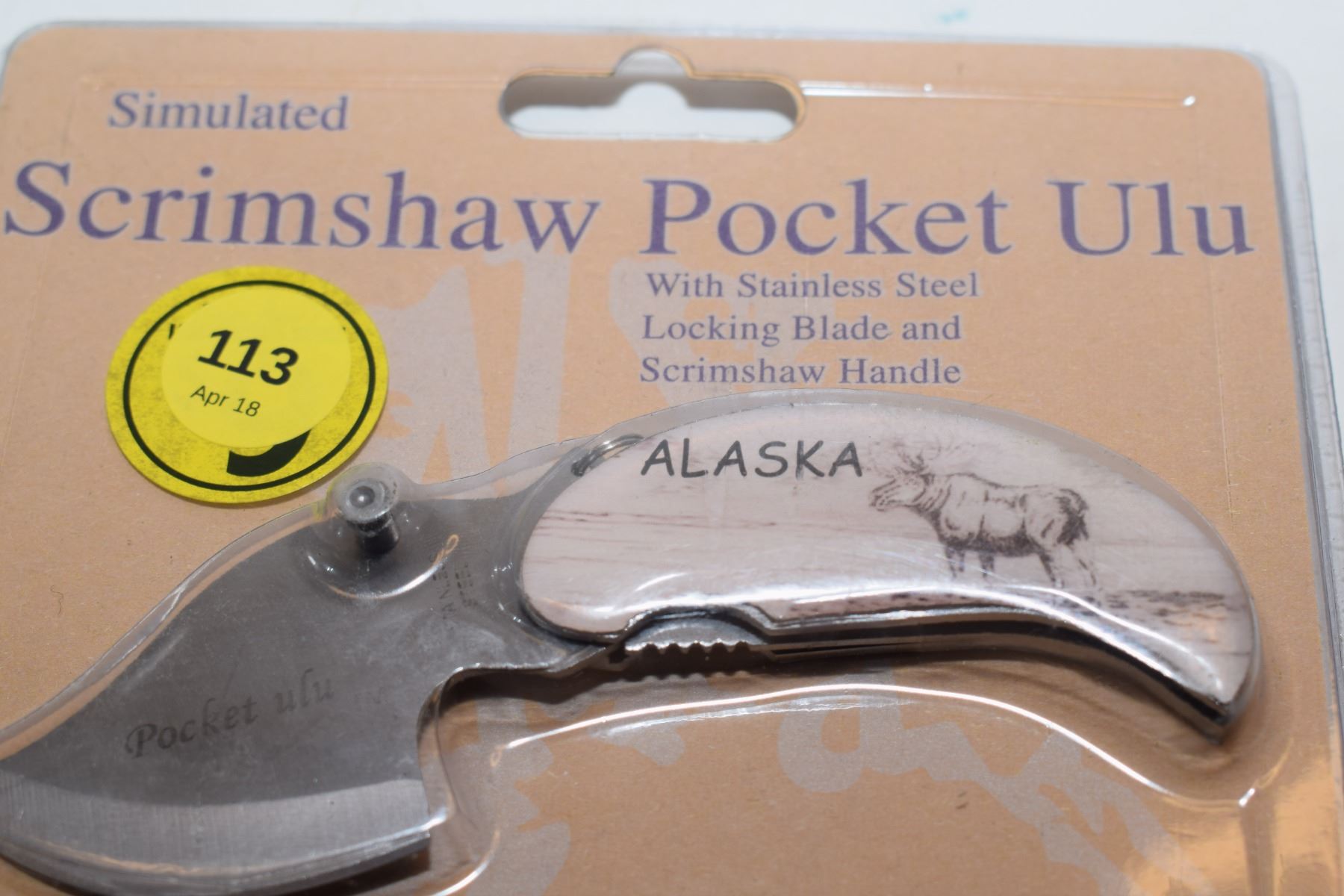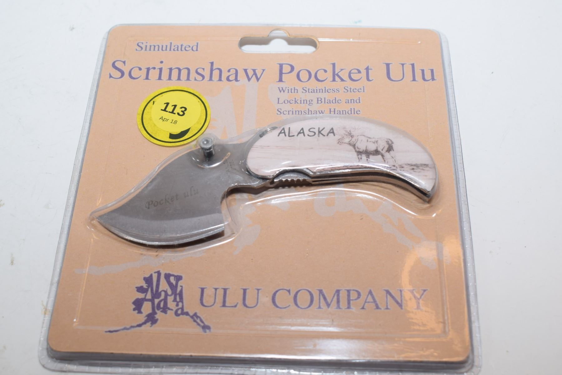 Lot 113 Scrimshaw Style ULU Knife NOS