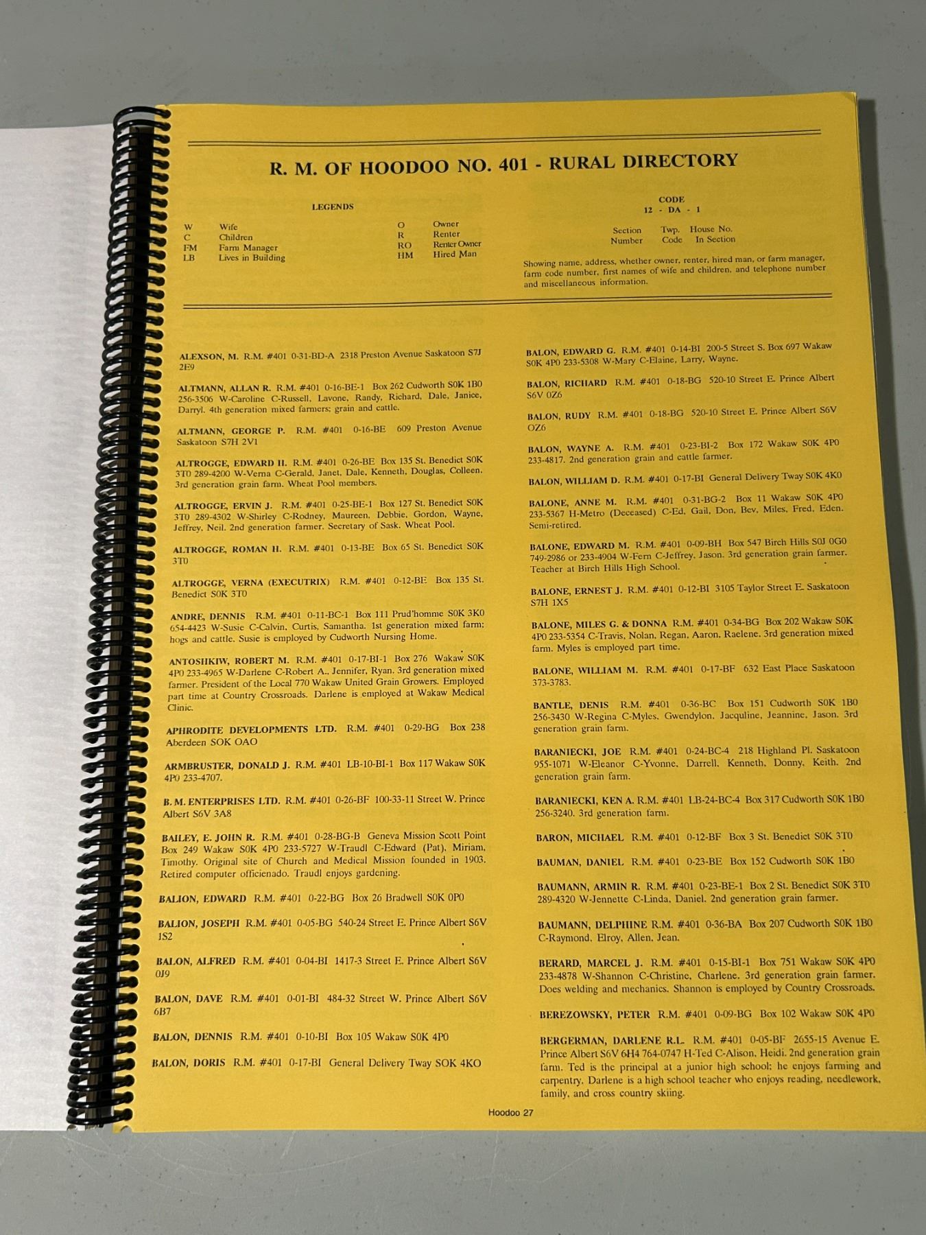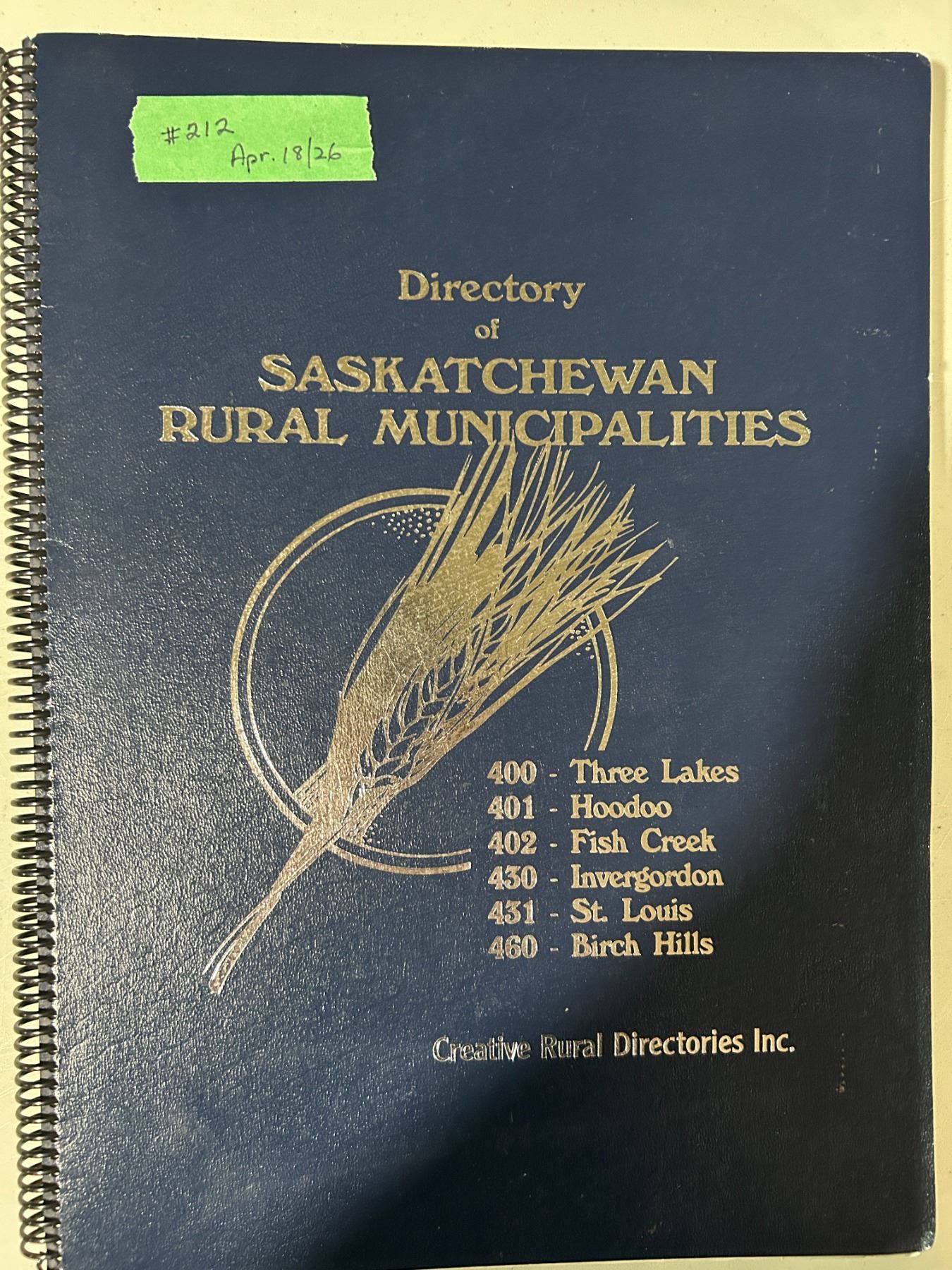 Lot 212 R.M. Directory – 5 RM’s including maps, names and photos 1993