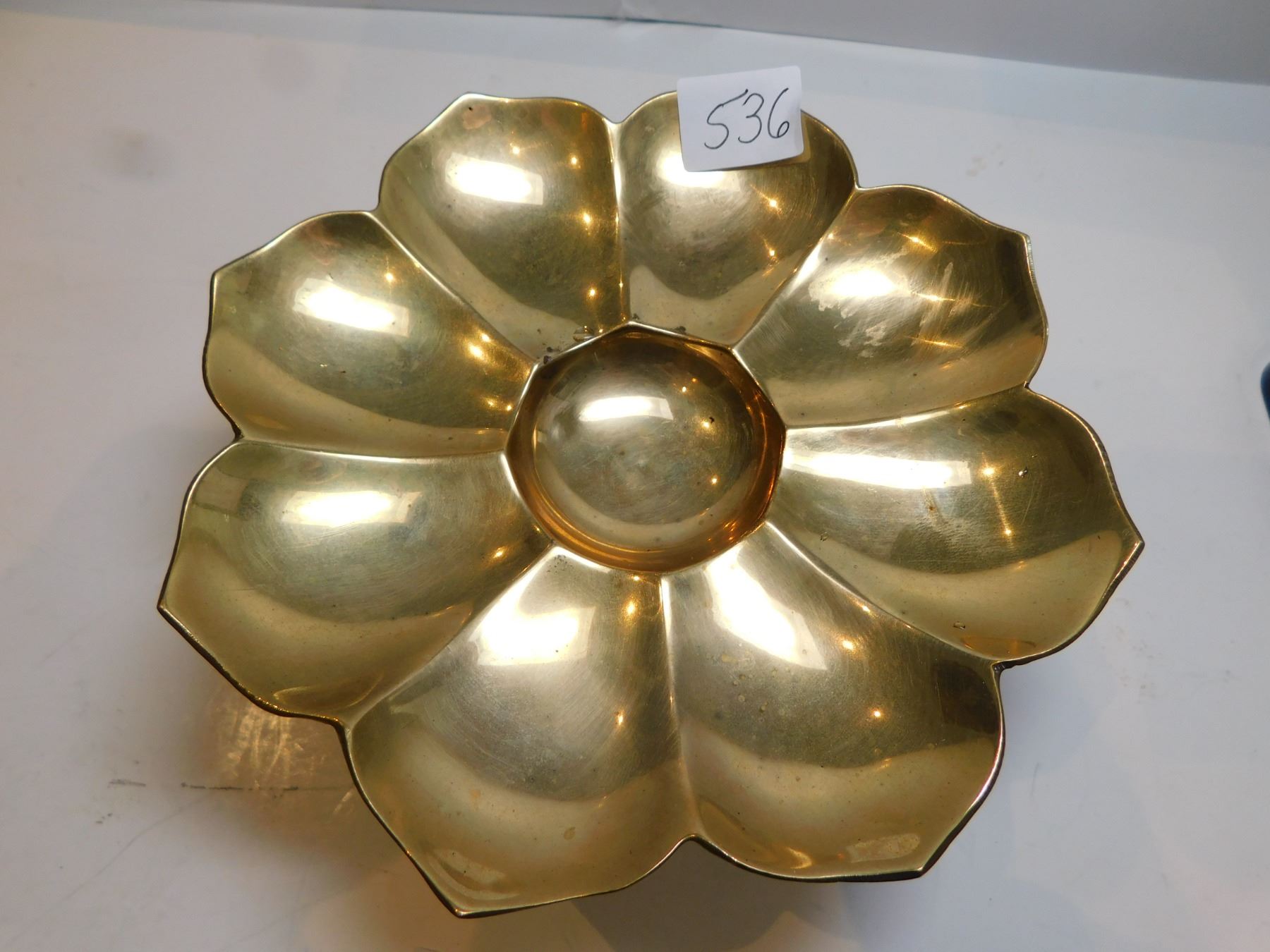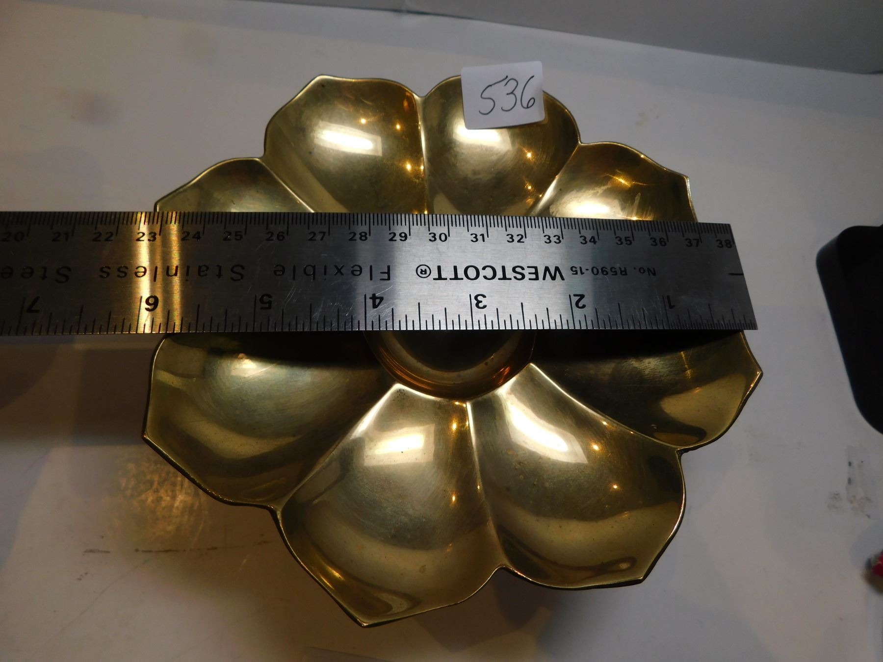 Lot 536 BRASS FLOWER SHAPED PEDESTAL TRINKET DISH