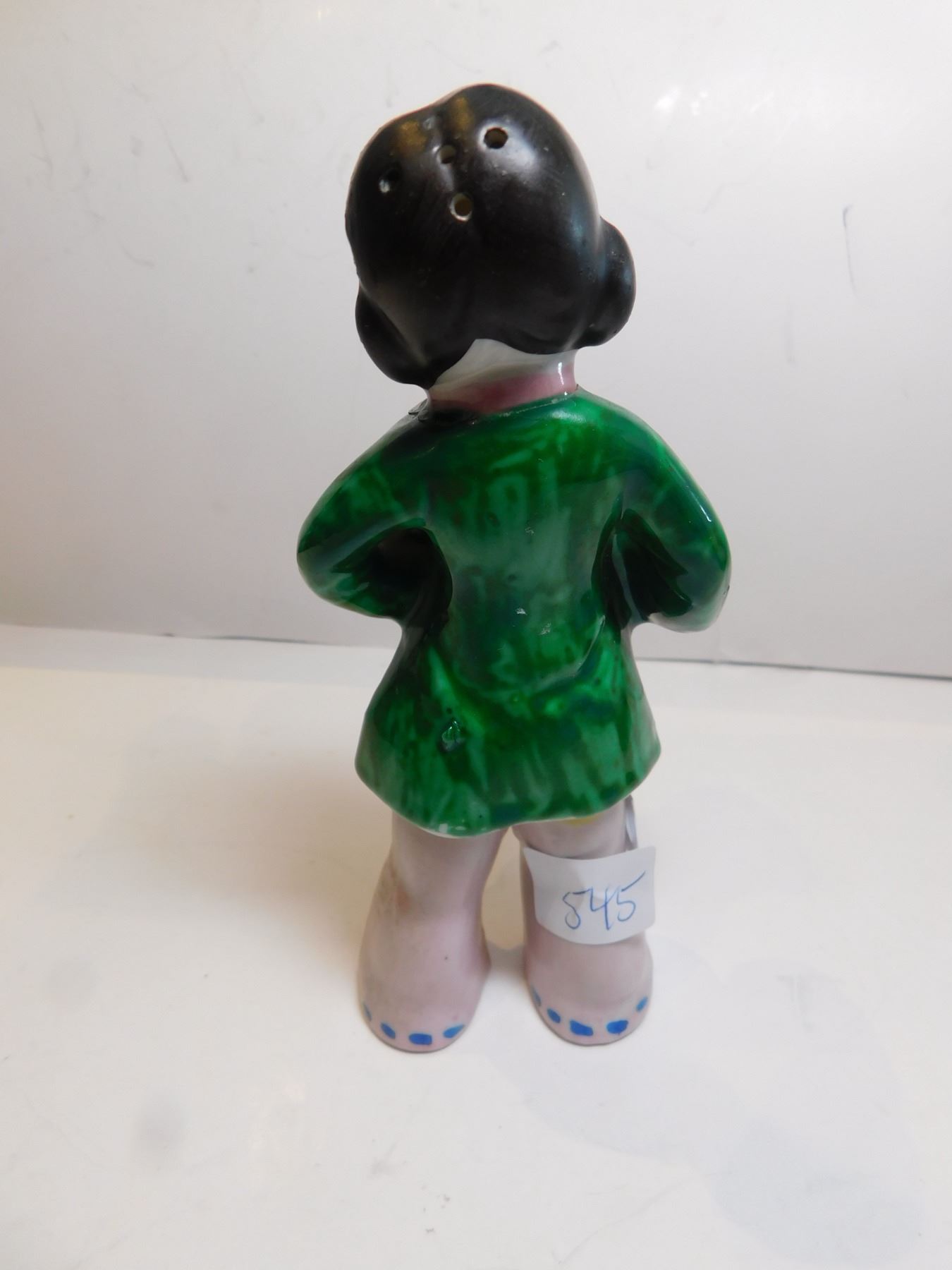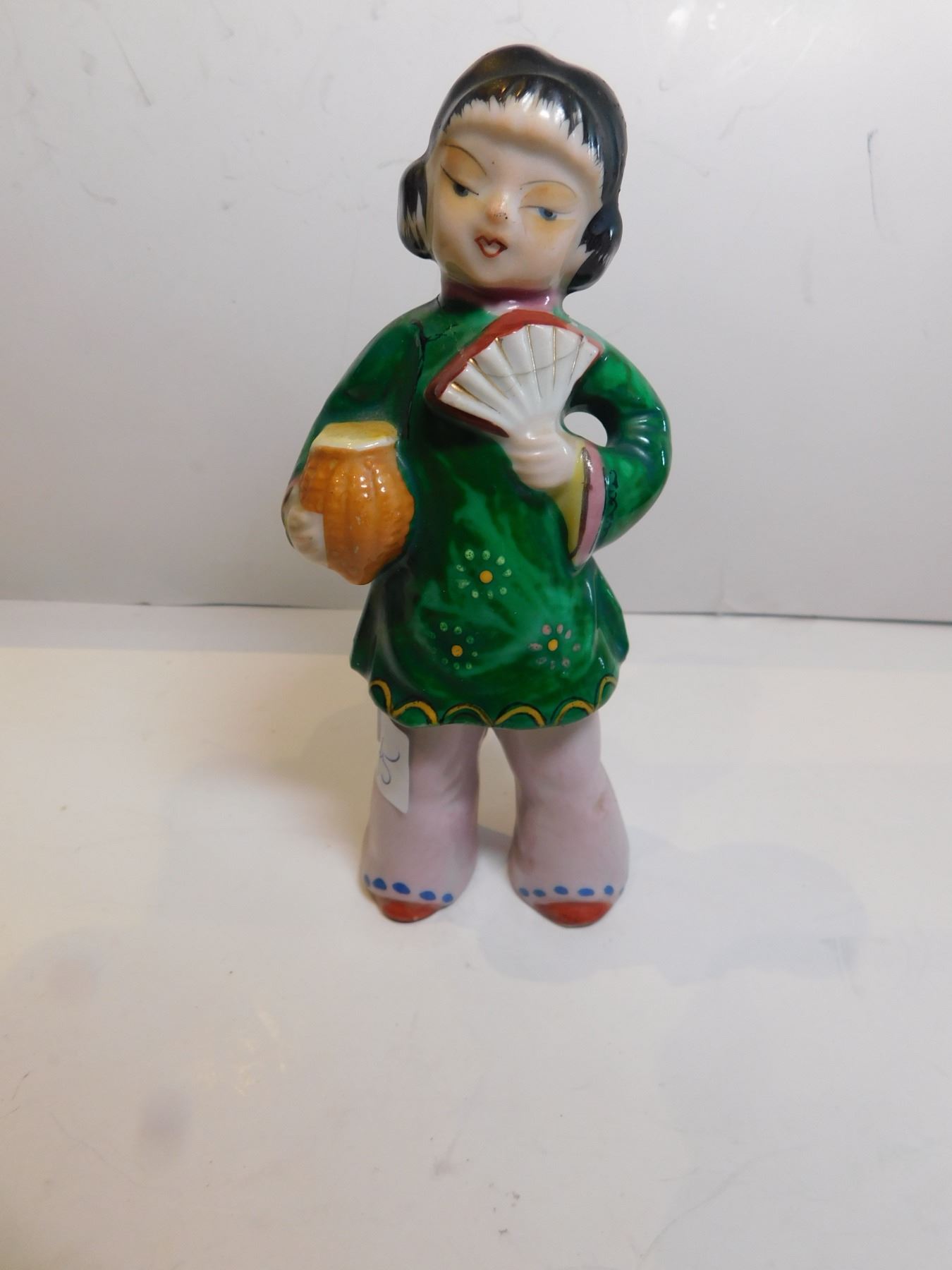 Lot 545 OCCUPIED JAPAN SALT AND PEPPER GIRL WITH FAN, FAN IS REPAIRED