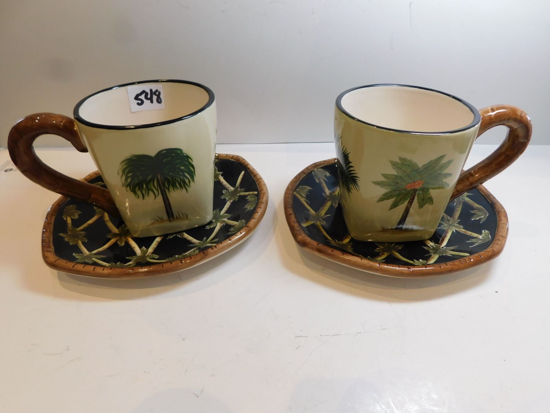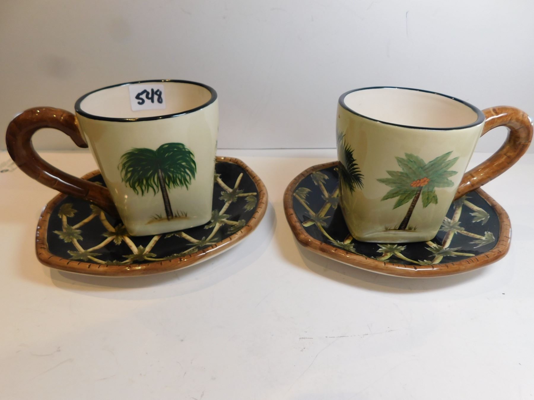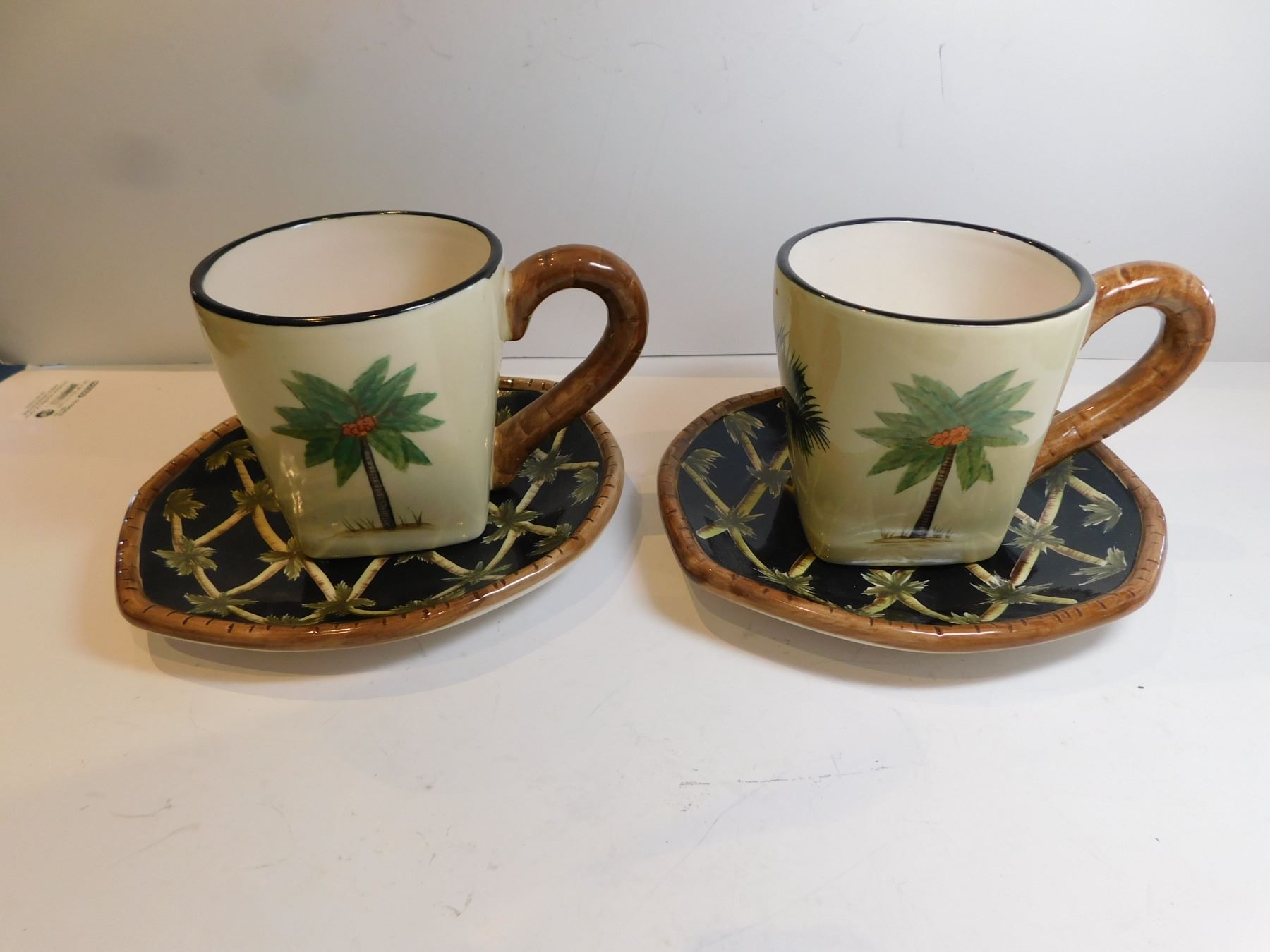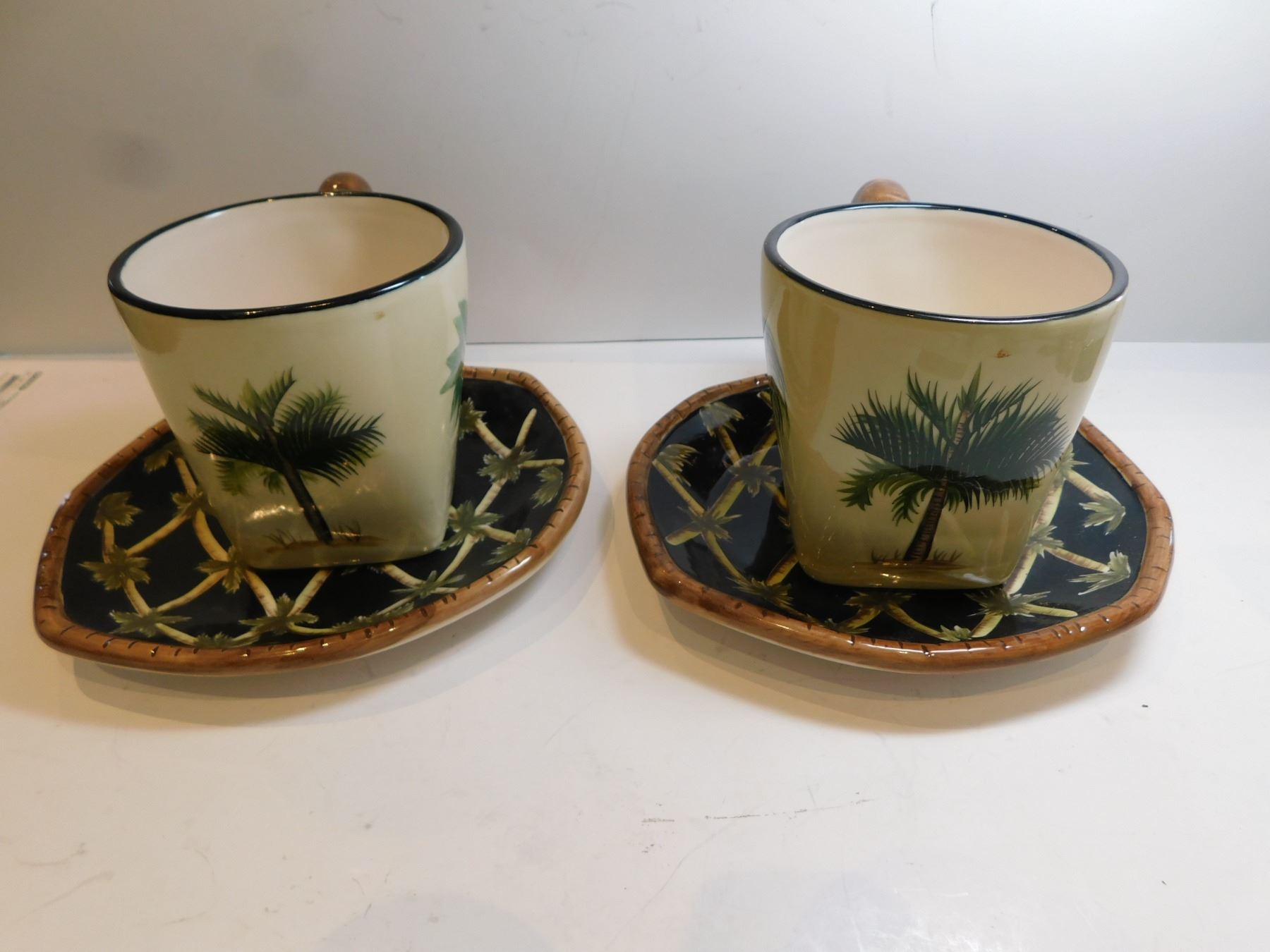 Lot 548 2-PACIFIC RIM CUP AND SAUCERS BLACK PALM TREE