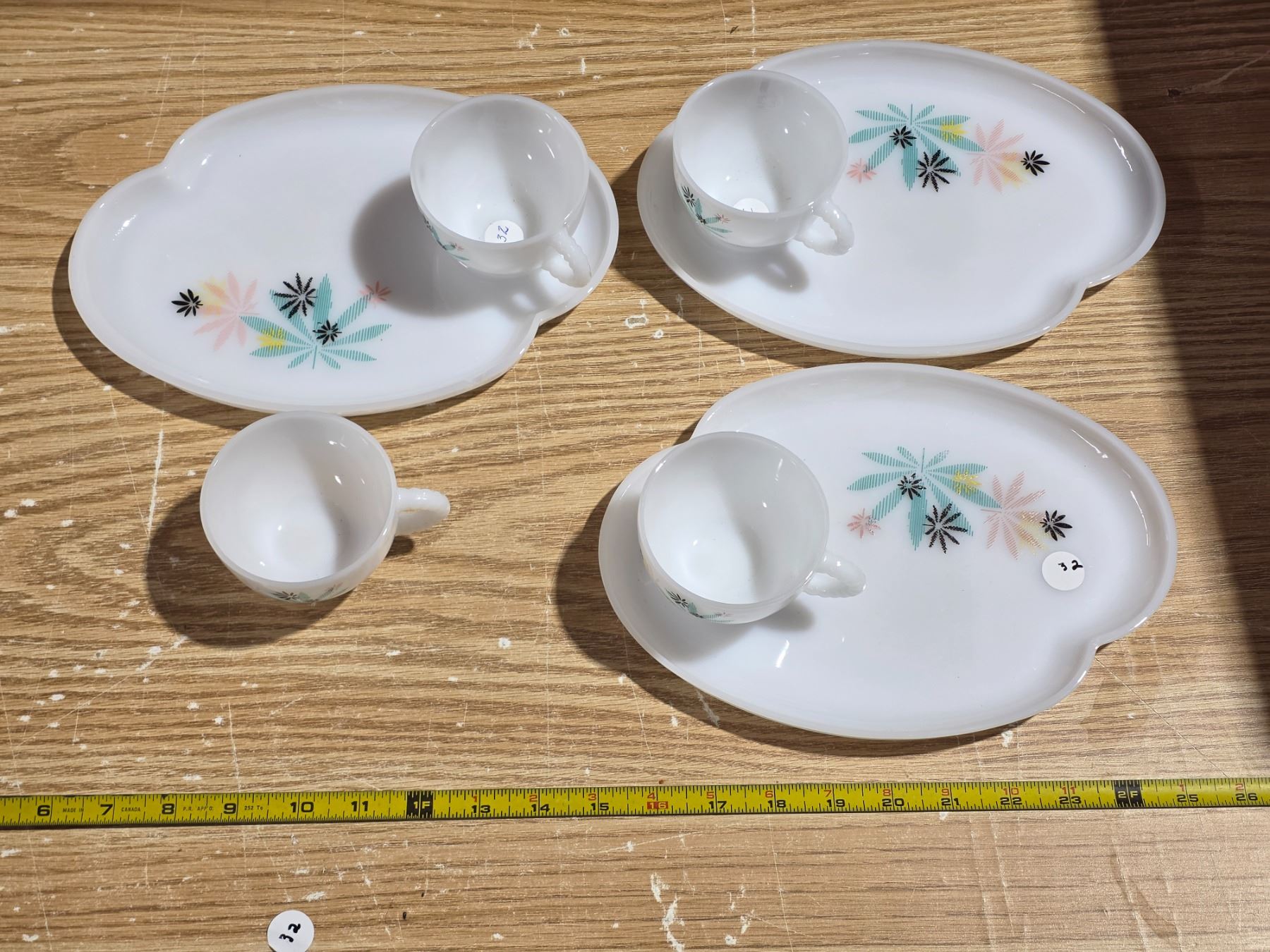 Lot 810 3 danity sandwich plates- federal glass with 4 cups