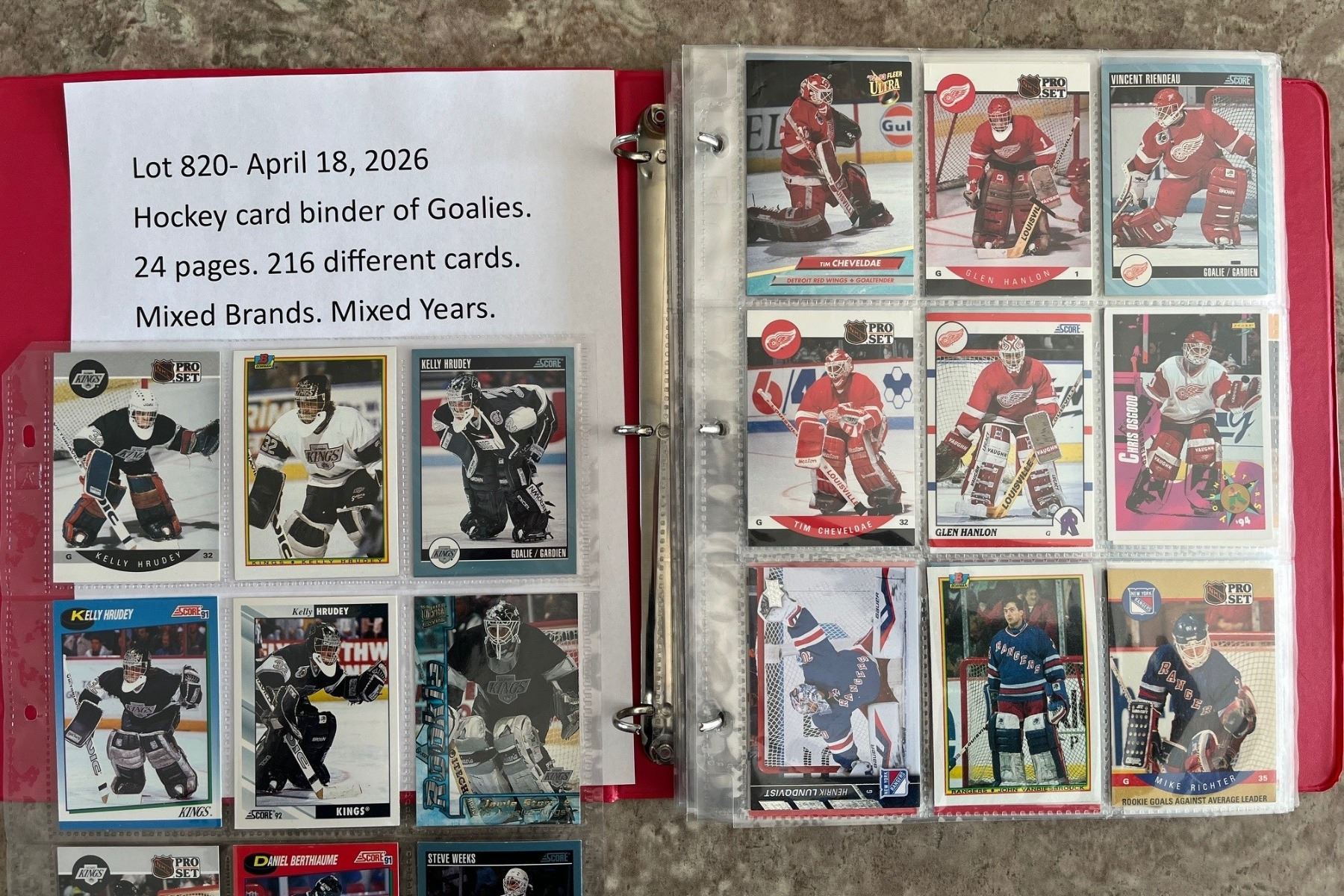 Lot 820 Hockey card binder of Goalies. 24 pages. 216 different cards. Mixed Brands. Mixed Years.