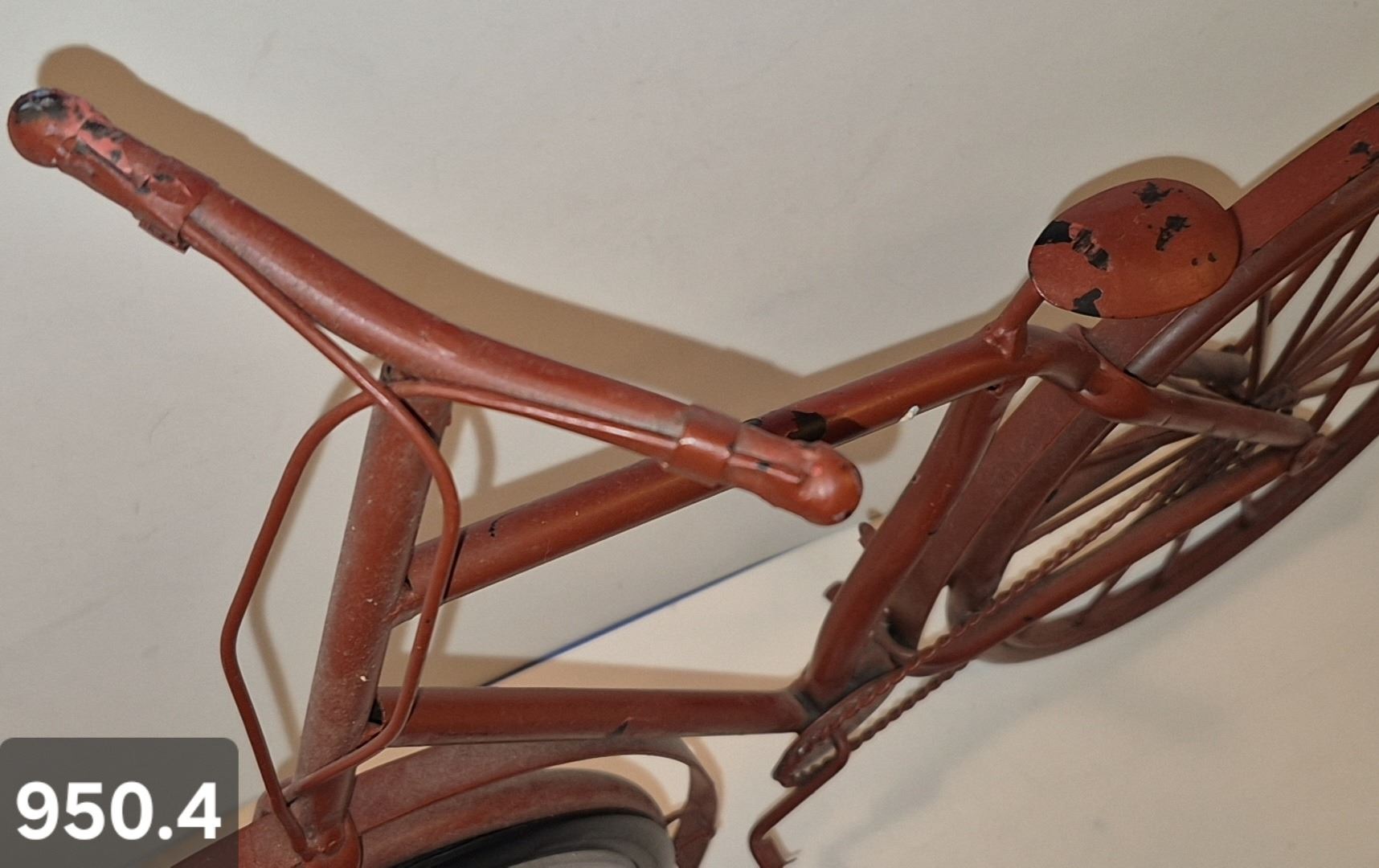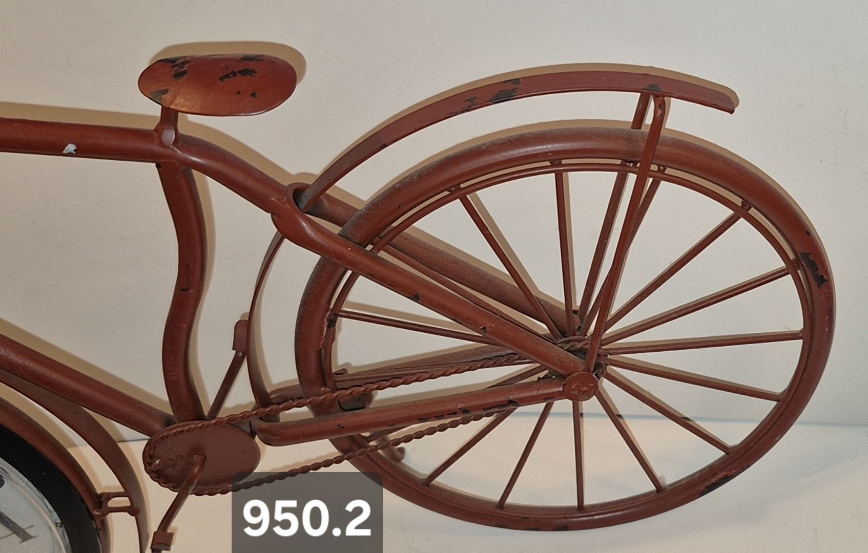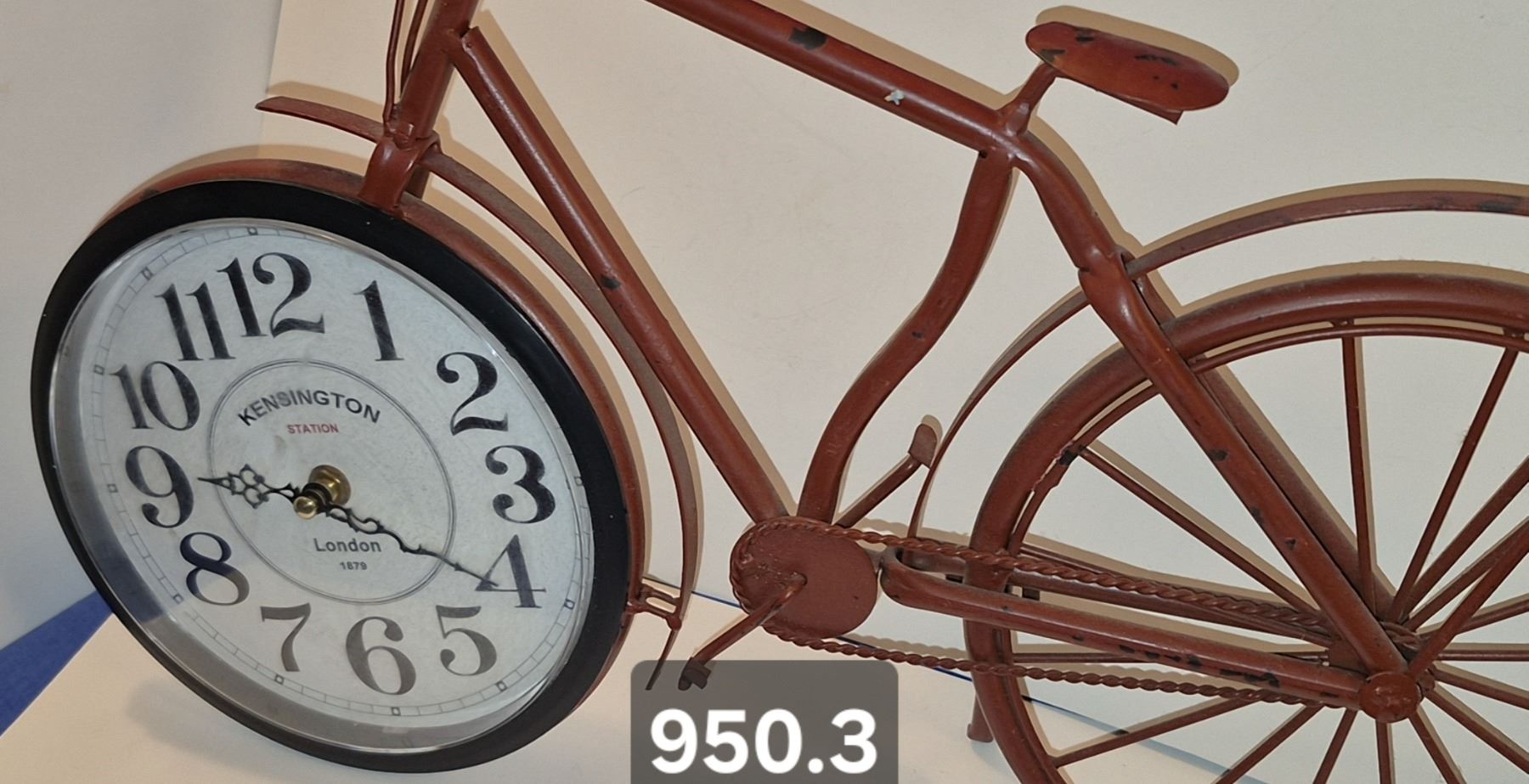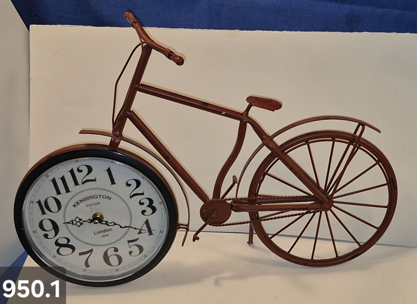 Lot 950 950. Vintage metal art bicycle with clock, with a working kick stand, 19 inches long