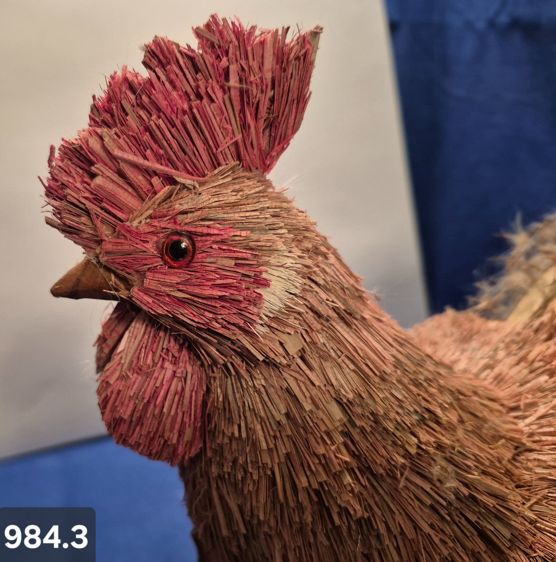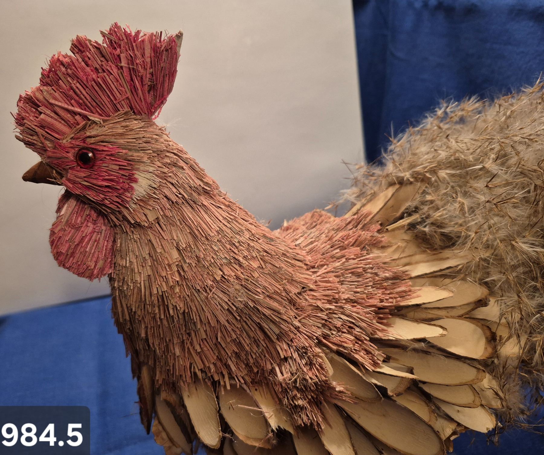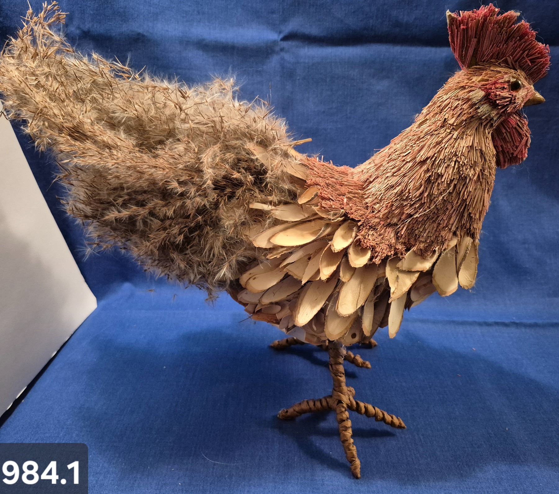 Lot 984 984. Large folk art rooster, made mainly of natural materials, steel legs and feet, 12 1/2 inches ta