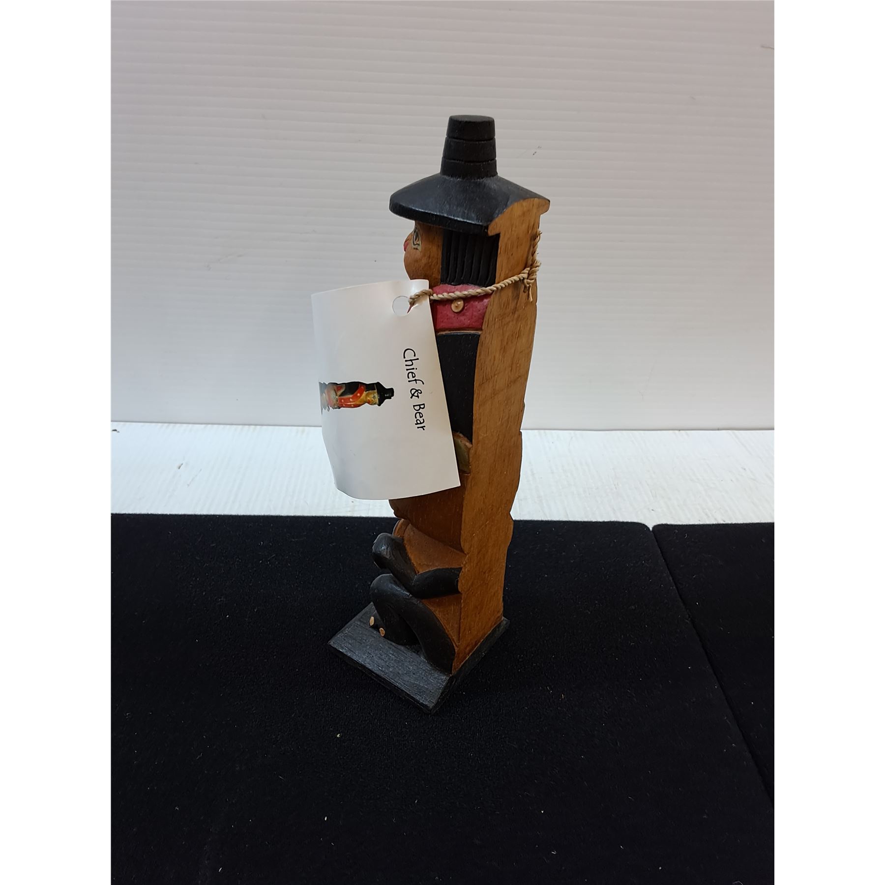 Lot 9287 Hand Carved Wooden Figure Labeled as "Chief&Bear"