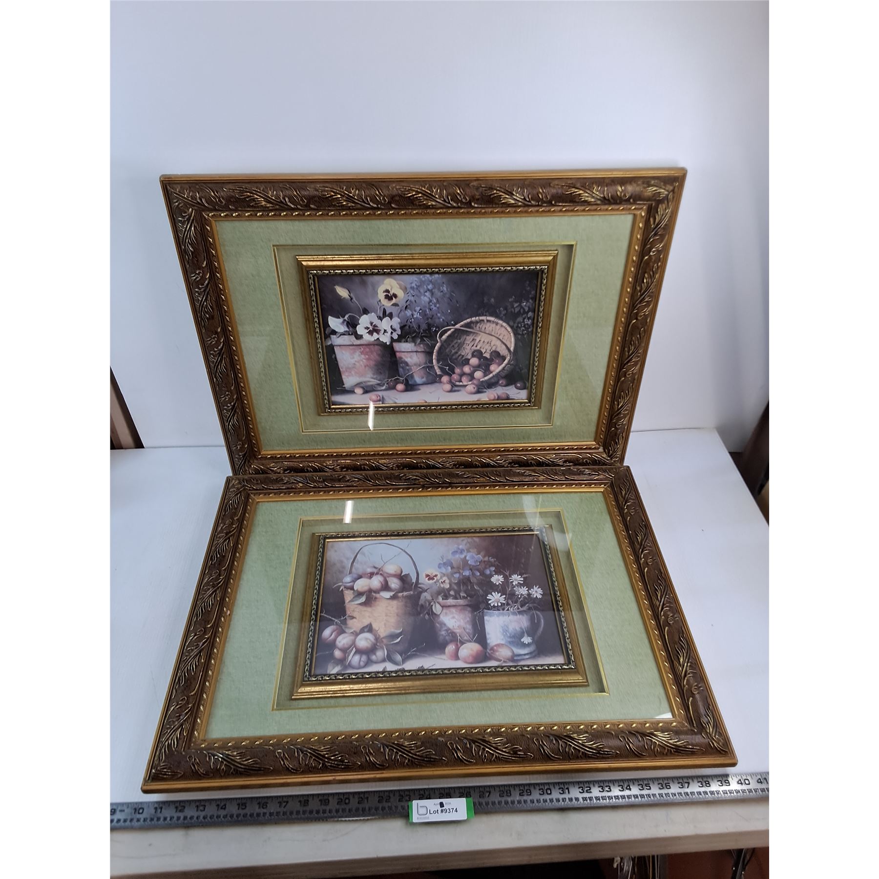 Lot 9374 Pair of Ornate Framed "Flowers & Fruit" Wall Decor - 29" x 22" Each