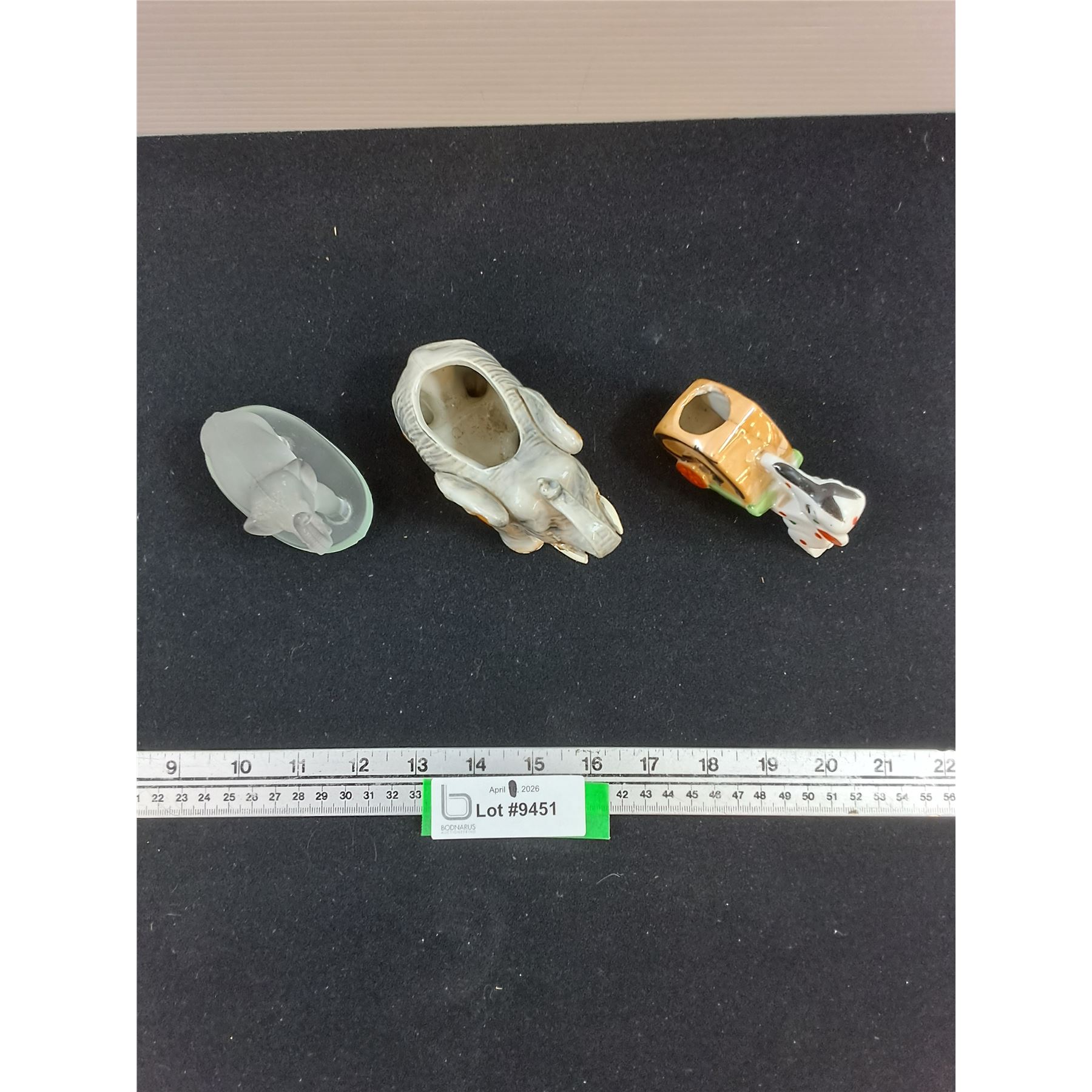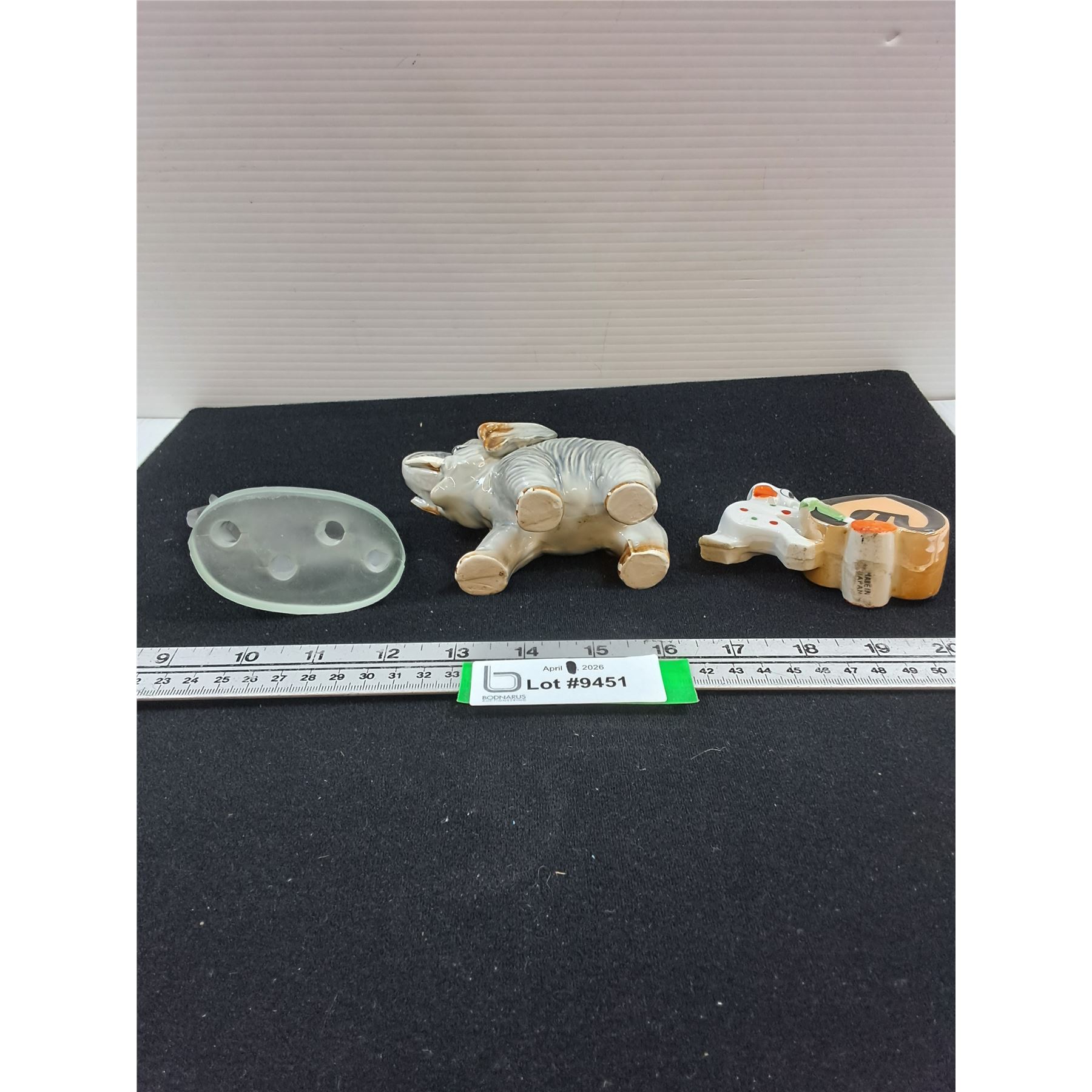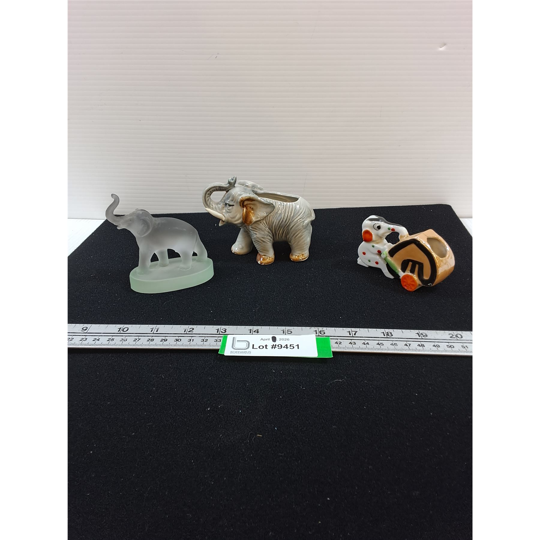Lot 9451 (3) Elephant Figures-1 glass, 2 ceramic