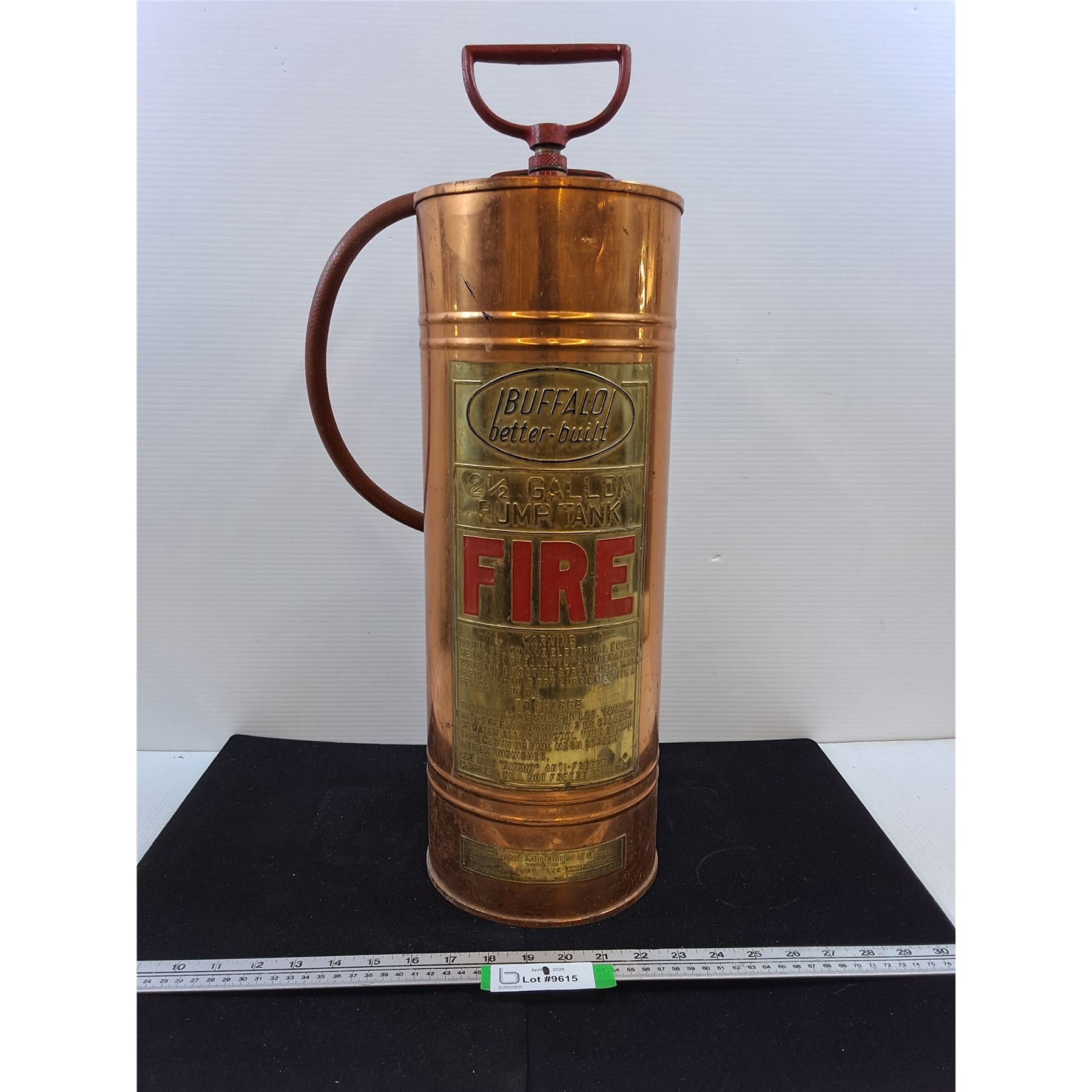 Lot 9615 # Buffalo Better-Built Fire Extinguisher, canister 20" tall-Cannot Ship