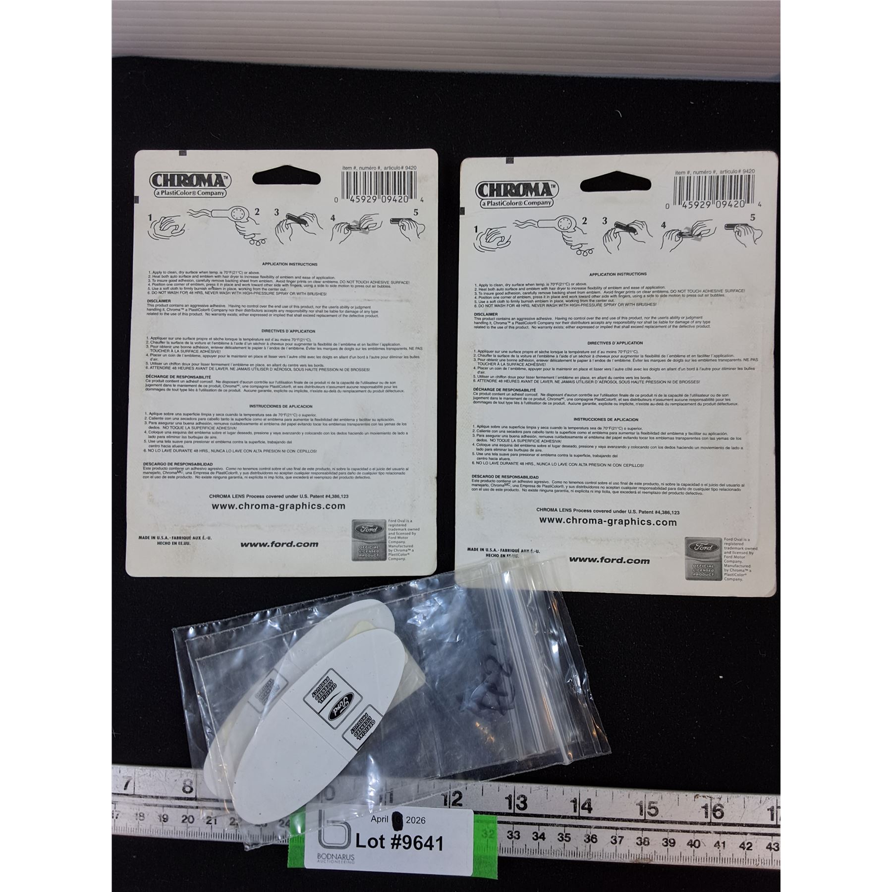 Lot 9641 (2) Packages Domed Ford Emblems, (3) Ford Decals 3.5" long
