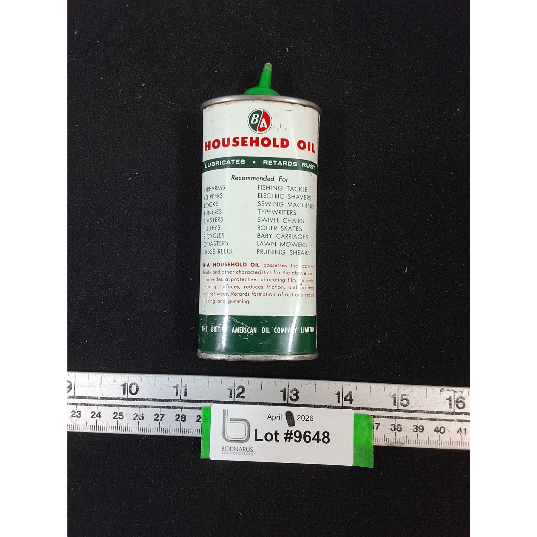Lot 9648 B/A Household Oil Tin - empty