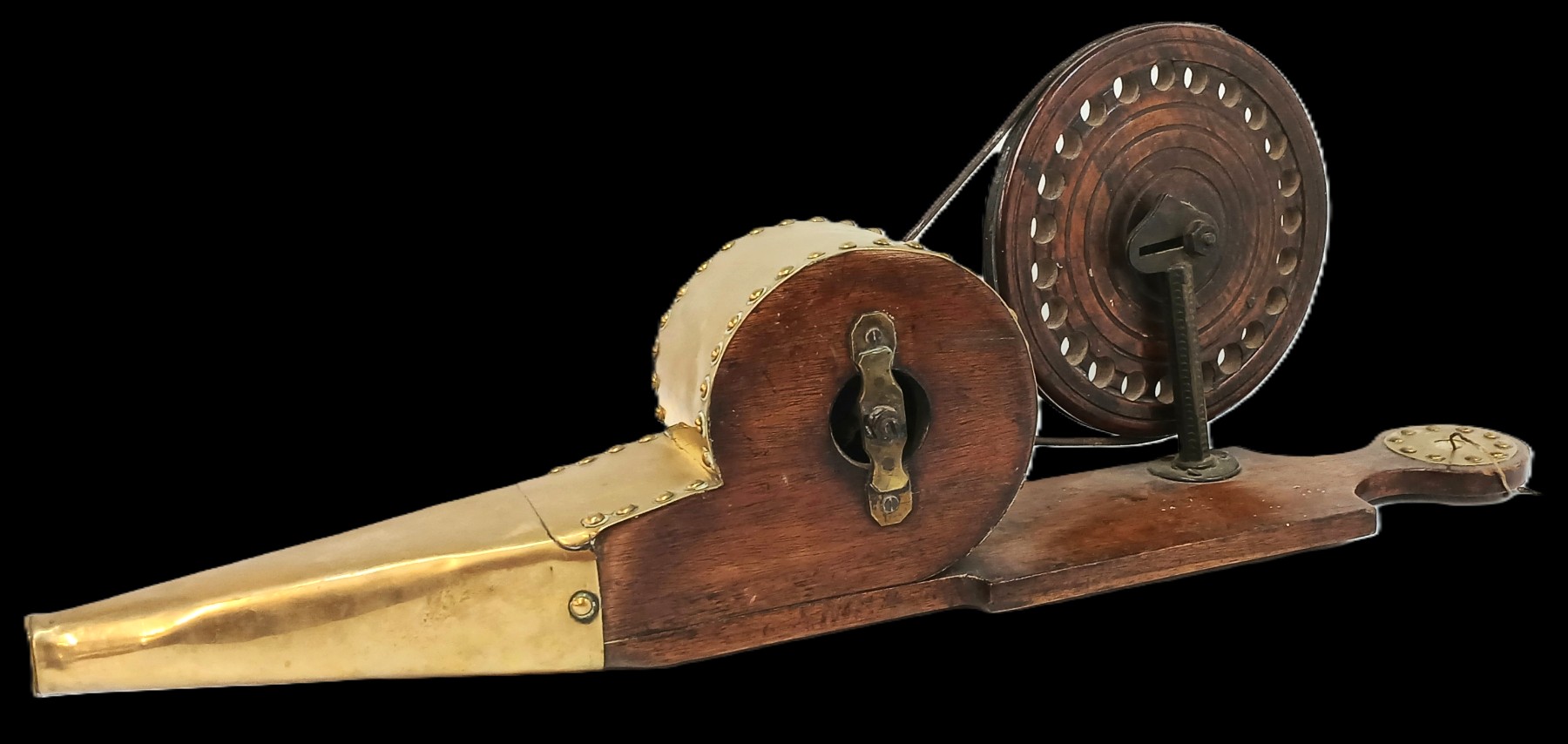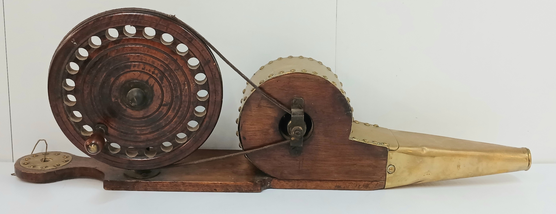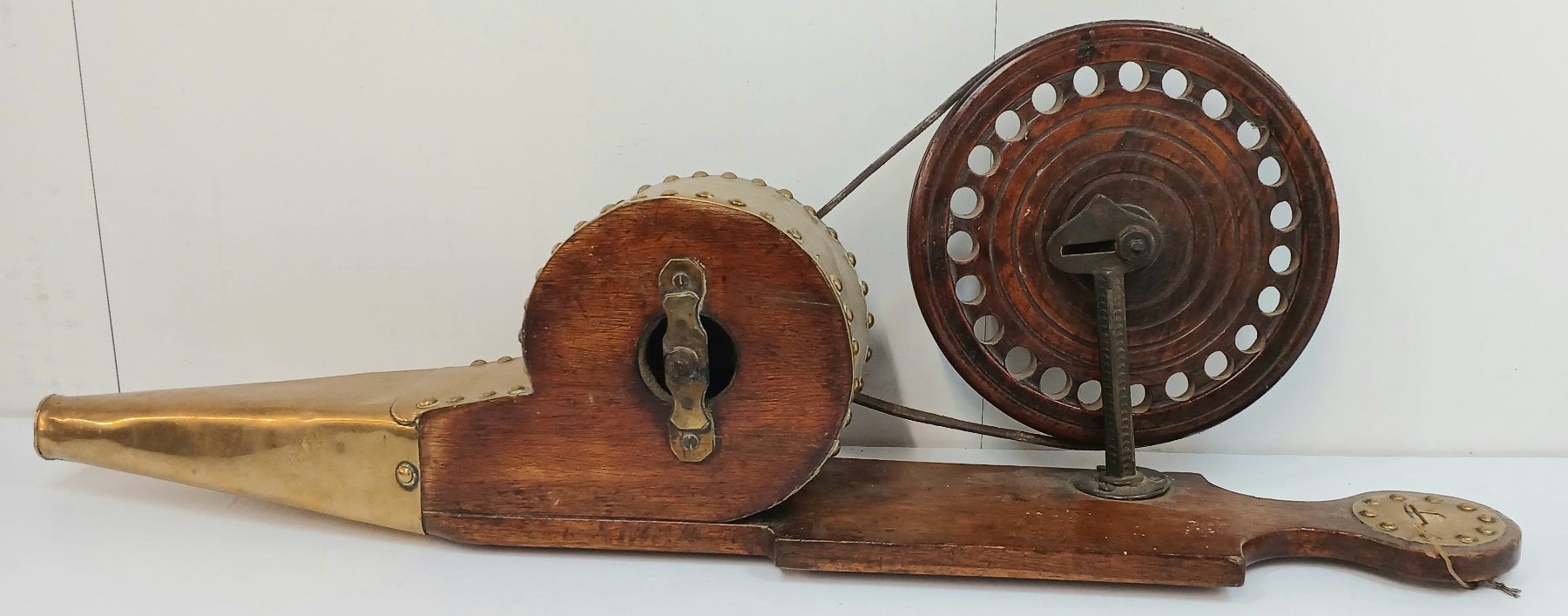 Lot 422 BRASS & MAHOGANY MECHANICAL FIREPLACE BELLOWS - 19TH CENTURY
