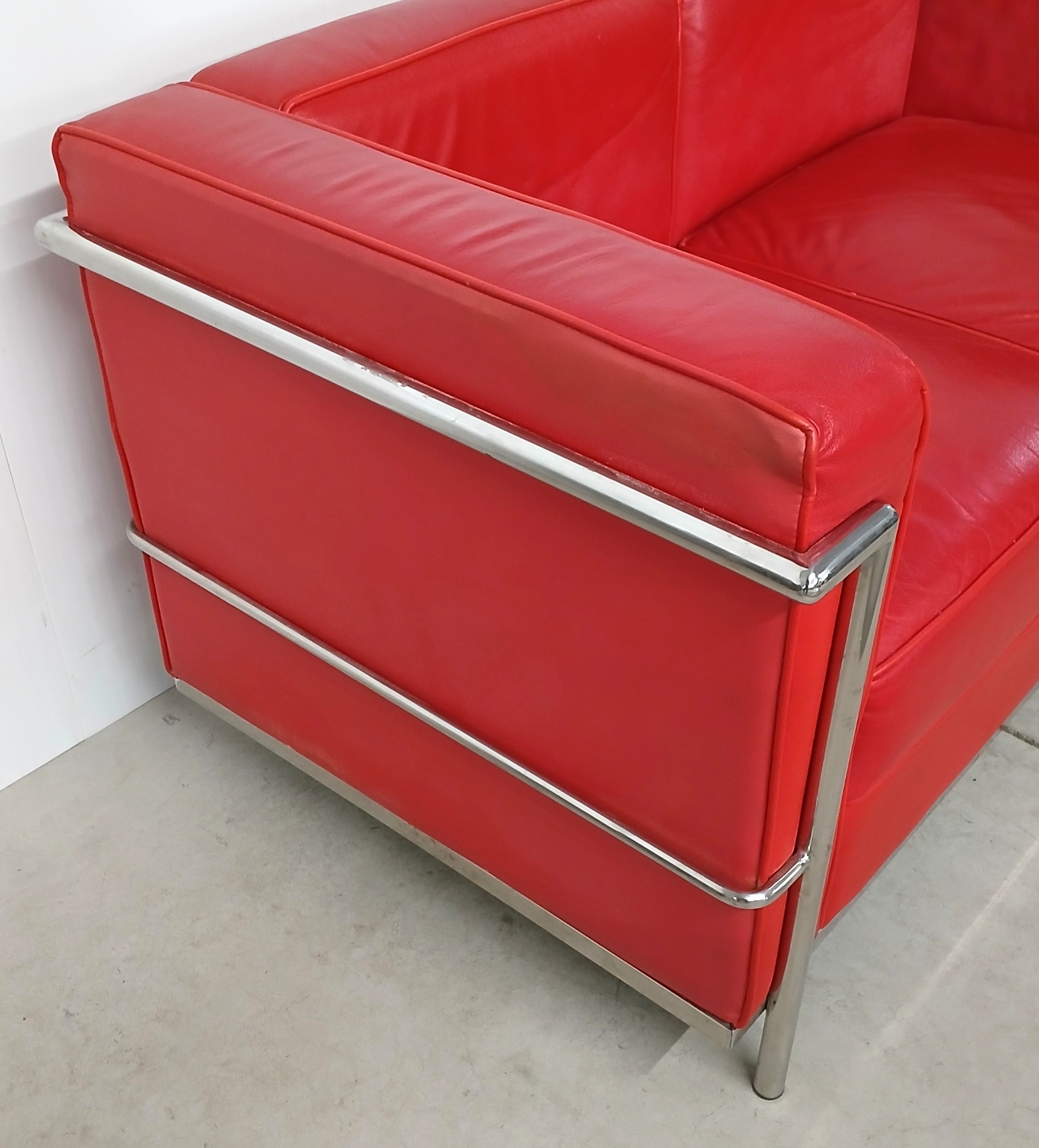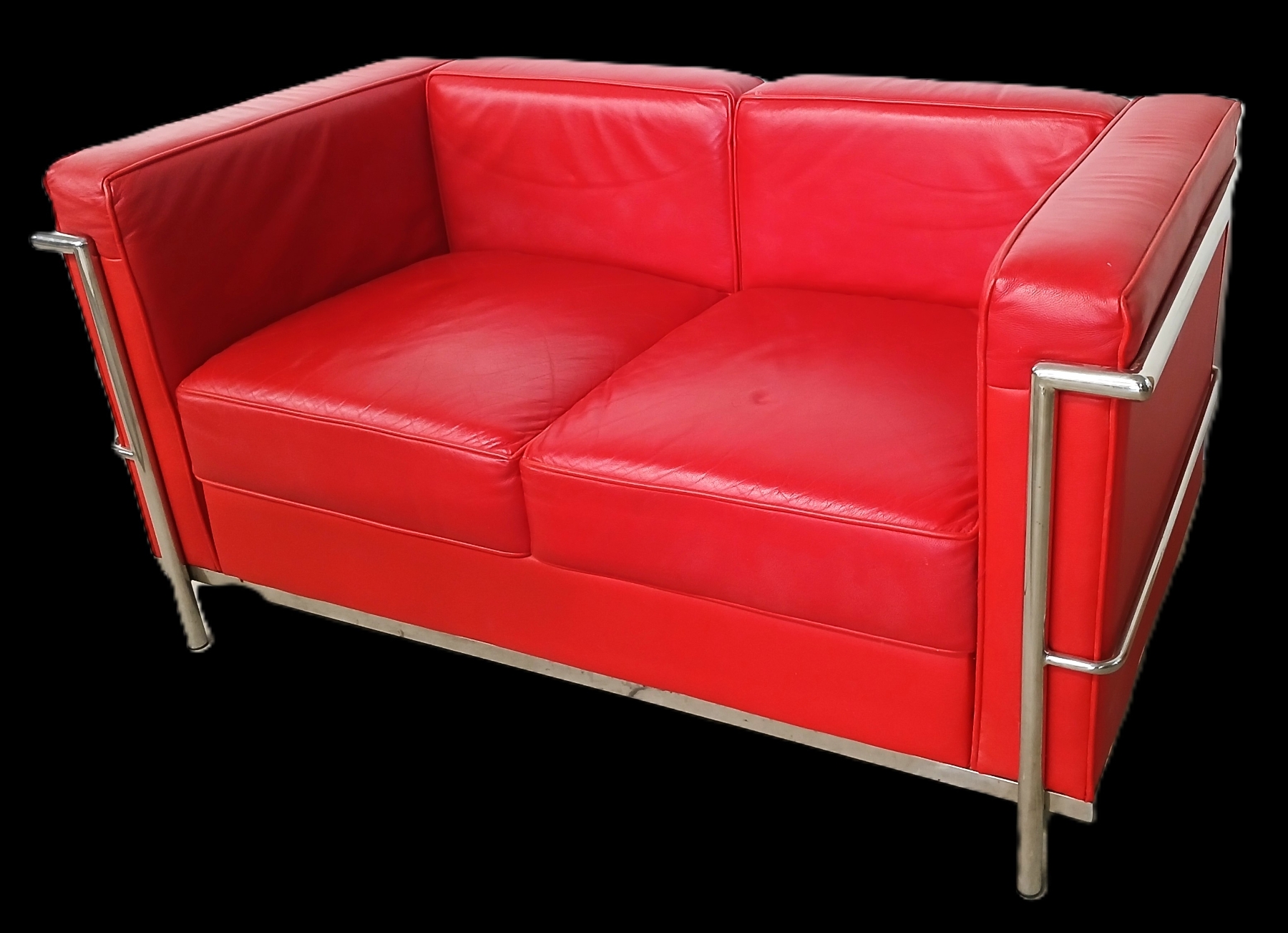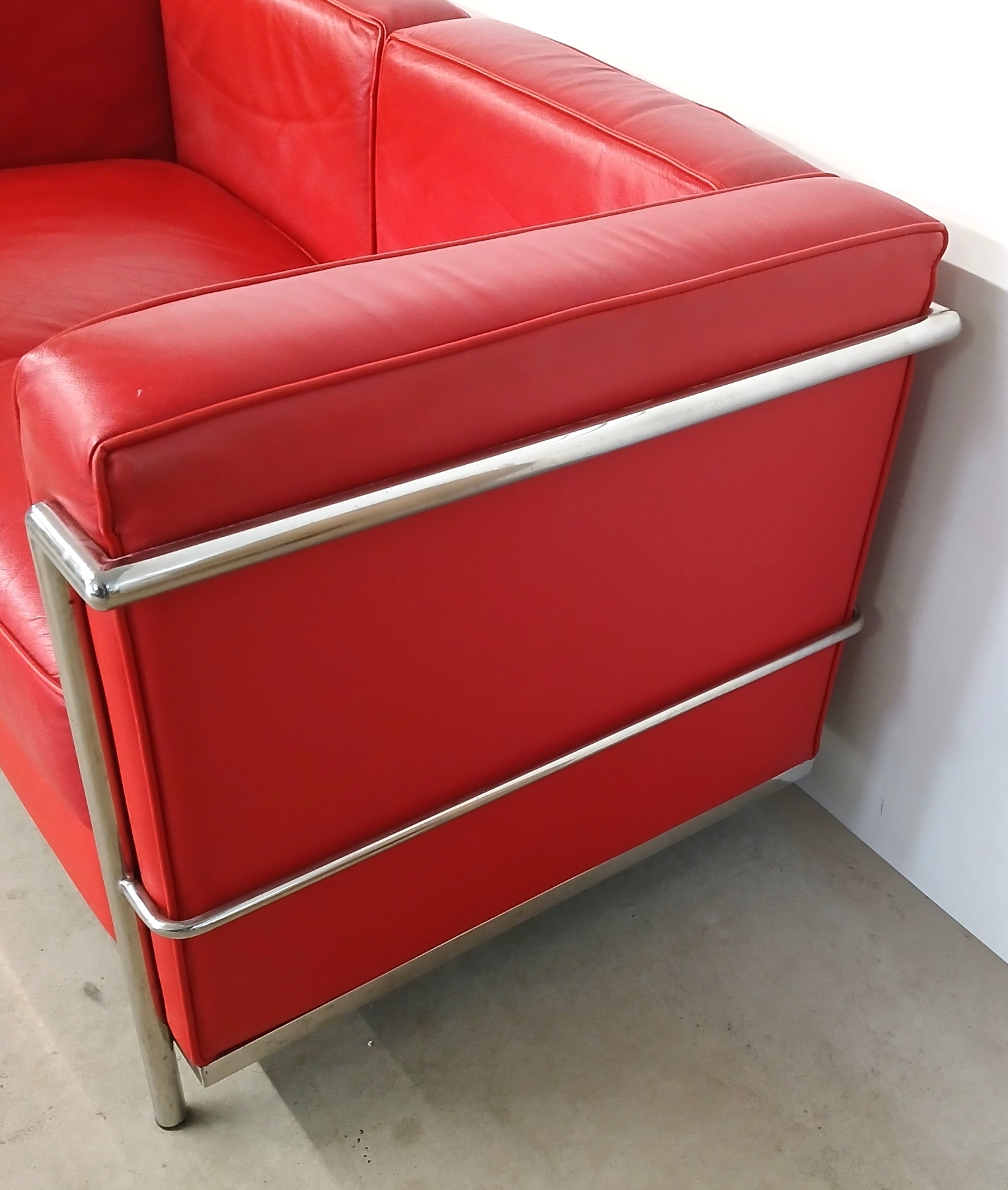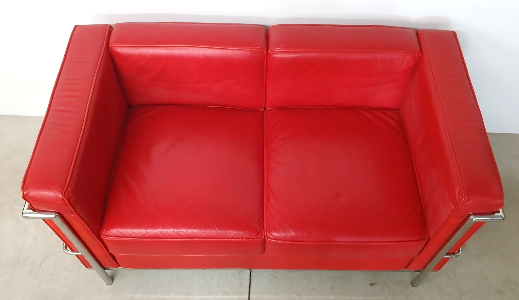 Lot 180A LEATHER LE CORBUSIER LC2 STYLE LOVESEAT SOFA - CIRCA 1970's
