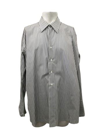 The End of the Affair (1999) - Henry Miles (Stephen Rea) screen worn, Anto of Beverly Hills custom dress shirt with grey and white stripe details. His initials are sewn into the collar with November 1998.