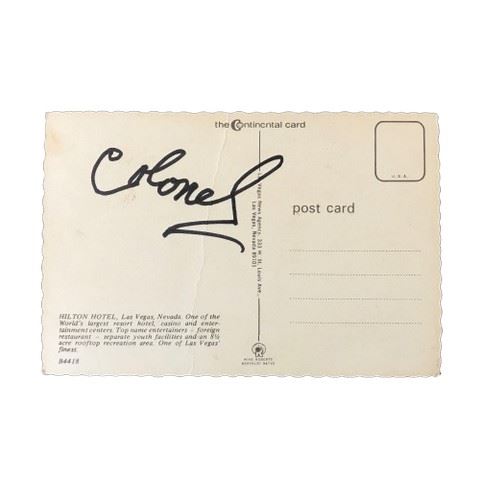 Lot 365 Colonel-Signed Postcard: Greetings From Vegas Hilton