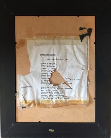 Jeremy Gentilli was a British artist who was born in 1926 and died in 2000. He was known for his abstract paintings/etchings. Gentilli studied at the Slade School of Fine Art in London and the Royal College of Art. He began exhibiting his work in the 1950s and had solo exhibitions at galleries in London, New York, and Paris. His works of art are mainly sold in Germany.