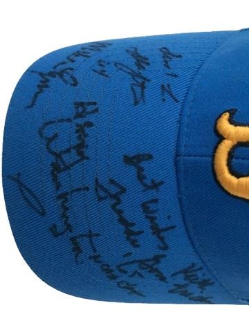 UCLA athletes (circa 1964-68) signed blue and gold baseball cap with UCLA embroidery. Signed by Freddie Goss, Kenny Washington, Michael Lynn, Keith Erickson, and more.