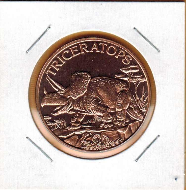 Lot 1075 1 OUNCE COPPER - .999 FINE - DINOSAURS - TRICERATOPS