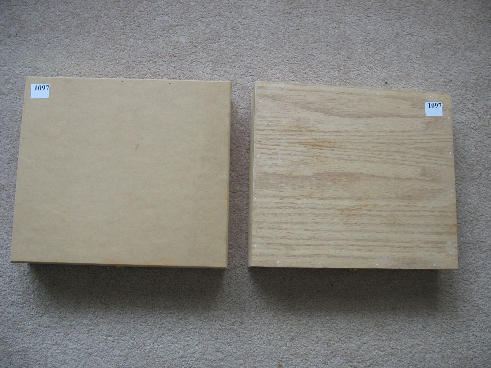 Lot 1097 LOT of 2 WOODEN DISPLAY/STORAGE BOXES - Inside measurements 12" X 10.5" X 1 1/2"