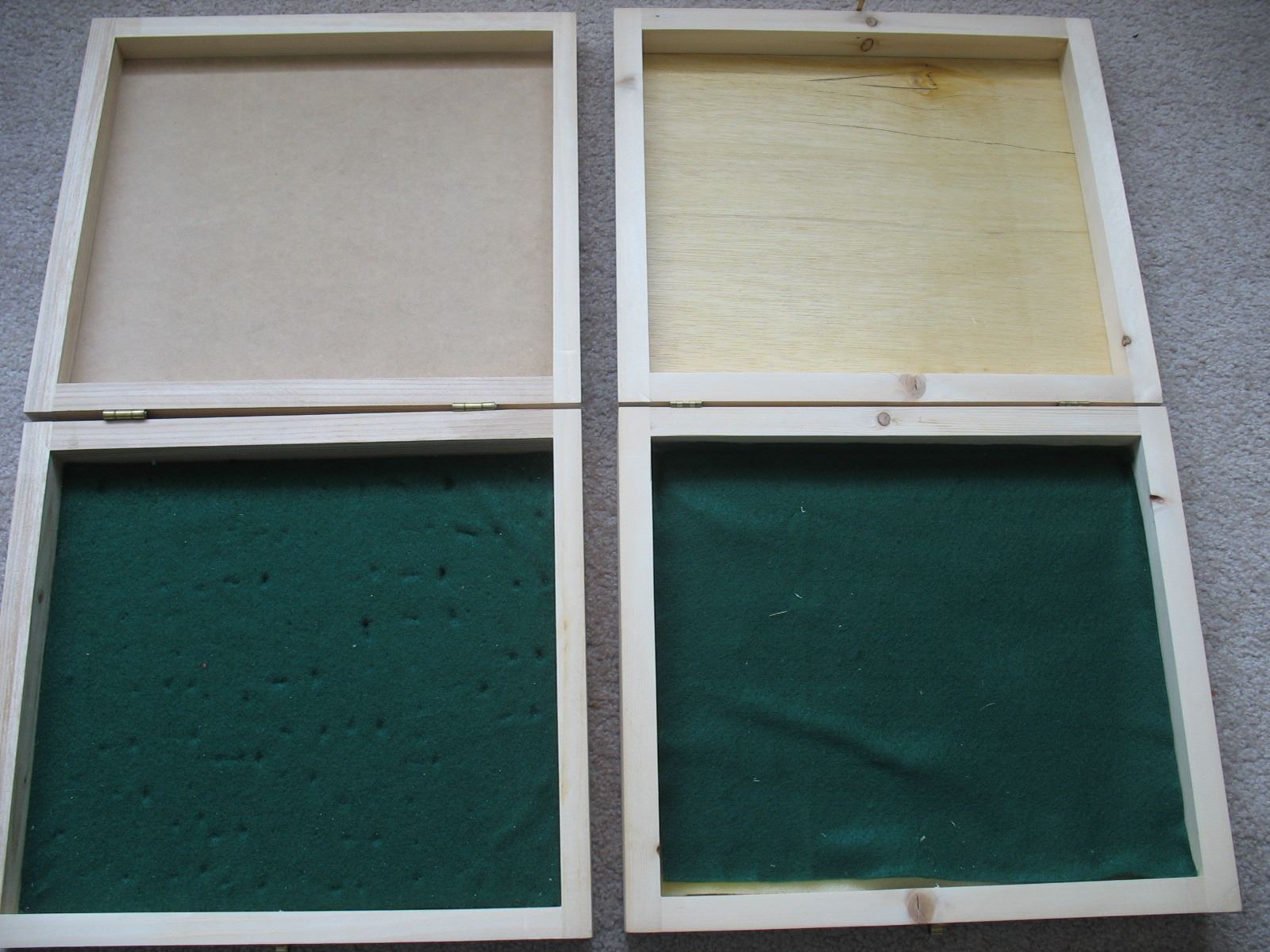LOT of 2 WOODEN DISPLAY/STORAGE BOXES - Inside measurements 12" X 10.5" X 1 1/2"