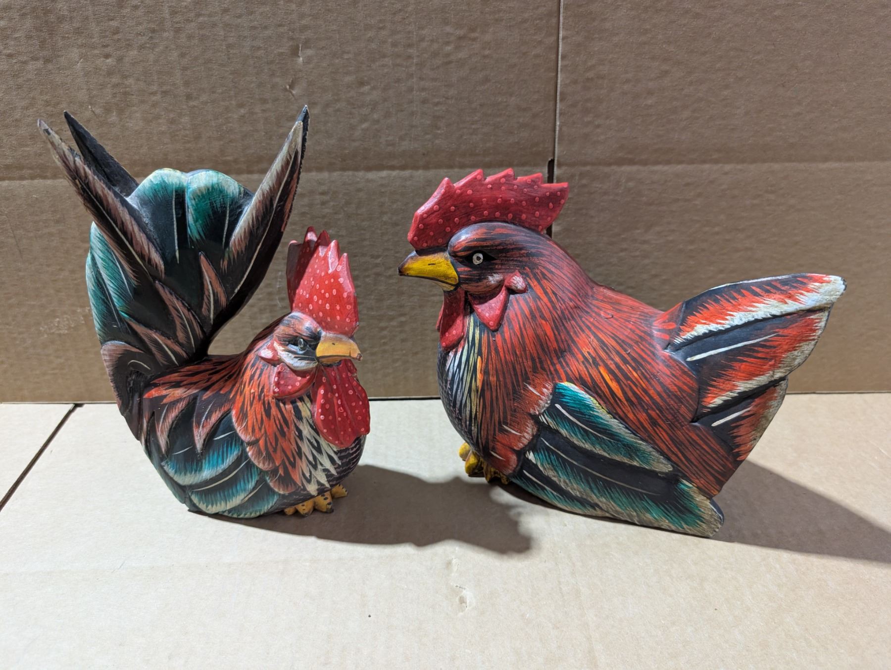 2 Paper Mache Chickens Set