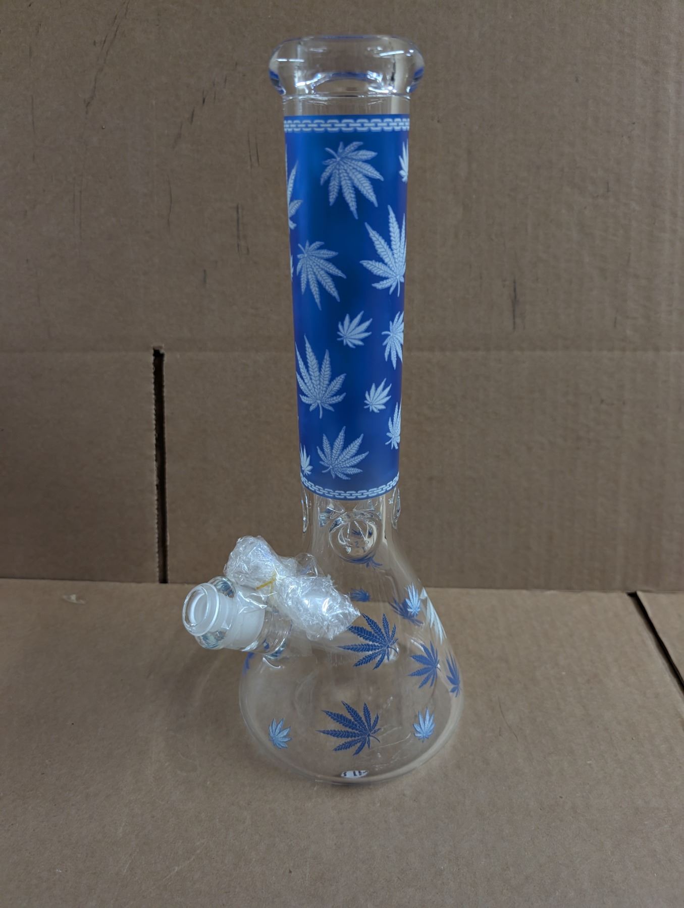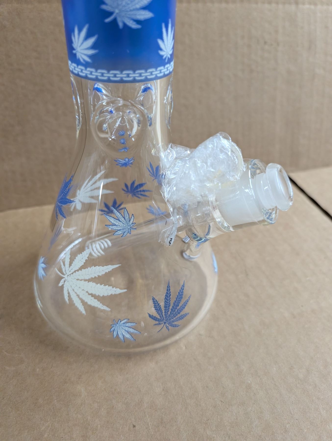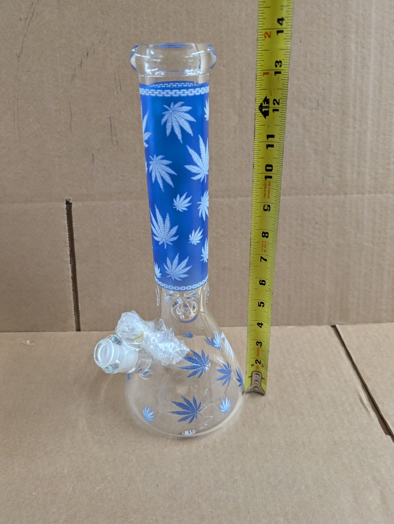 14" H Cannabis Leaf Glass Smokers Bong (Never Used)