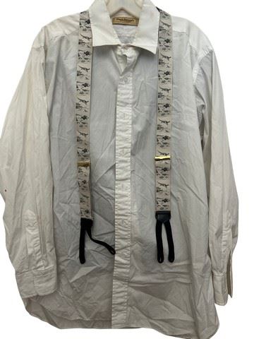 The Way Of The Gun (2000) - Hale Chidduck(Scott Wilson) screen worn Paul Stewart white dress shirt (16 1/2-34) with Padua slate grey pants and custom designed suspenders. Includes a costume department wardrobe tag.