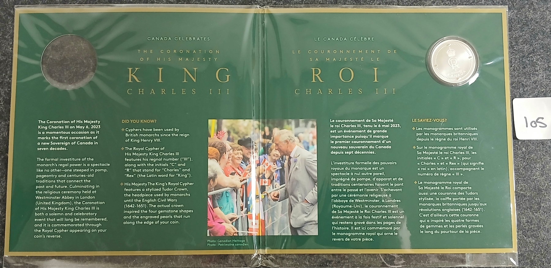 Lot 105 2023 RCM $5 FINE SILVER COIN - KING CHARLES III