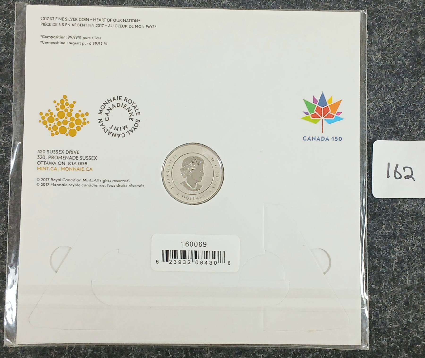 Lot 162 2017 RCM FINE SILVER $3 COIN - HEART OF OUR NATION