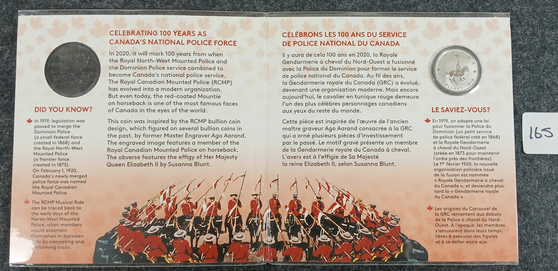Lot 165 2020 RCM FINE SILVER $5 COIN - THE ROYAL CANADIAN MOUNTED POLICE