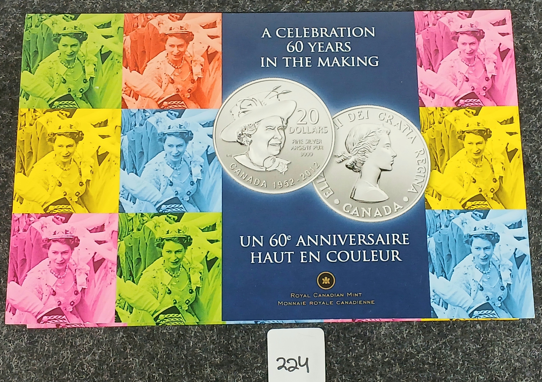 Lot 224 2012 RCM SILVER $20 COIN - A CELEBRATION 60 YRS IN THE MAKING