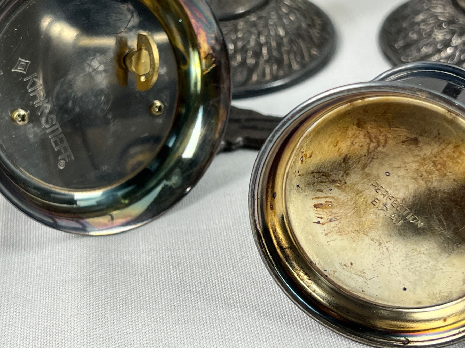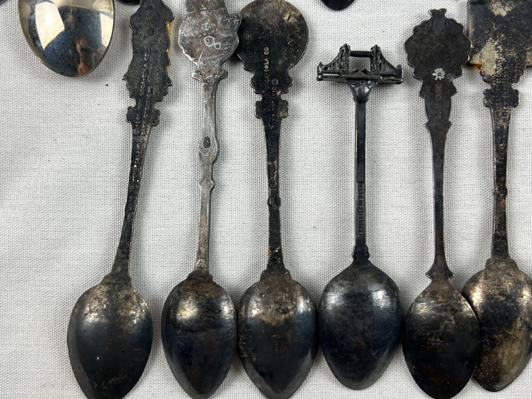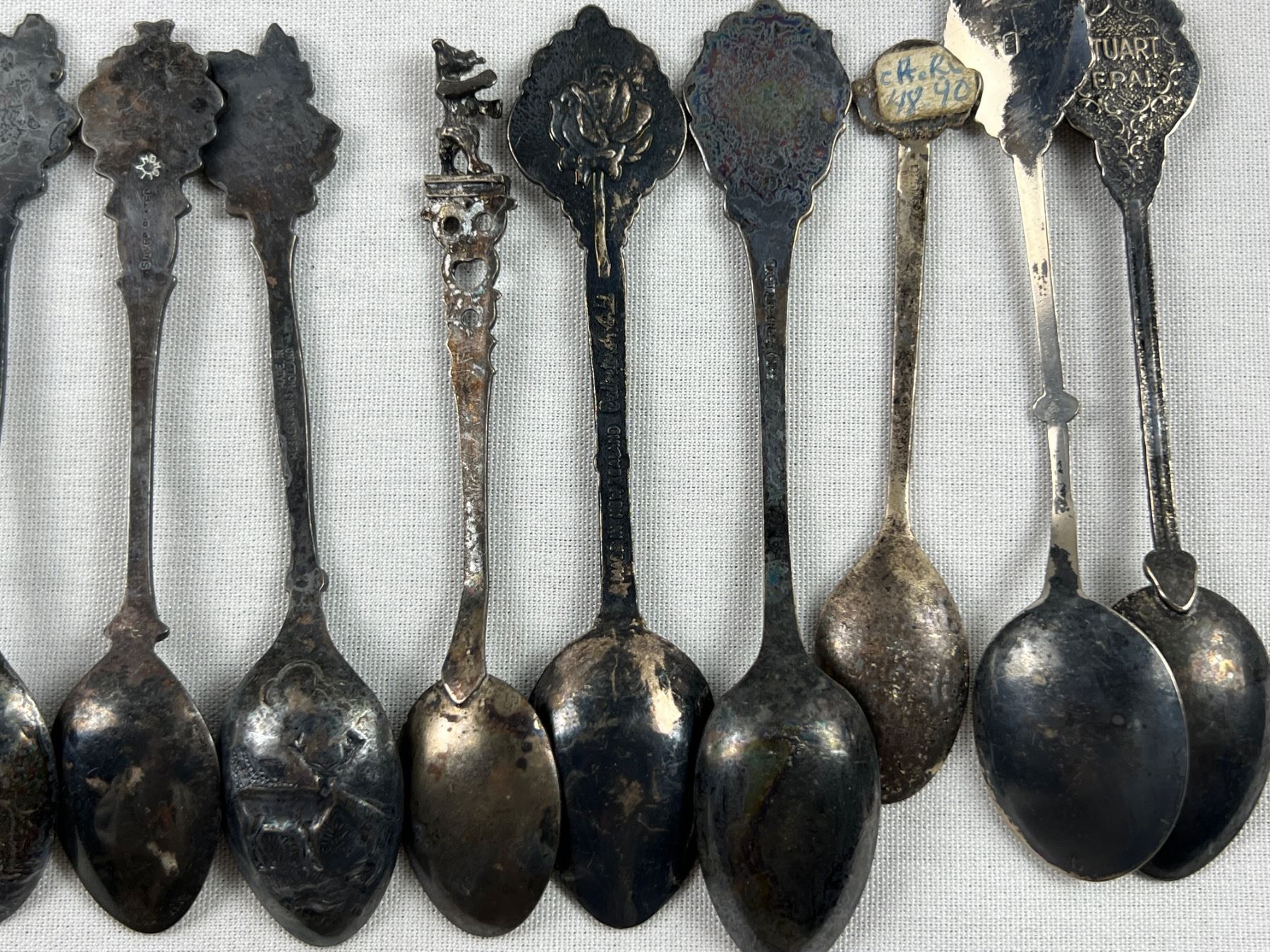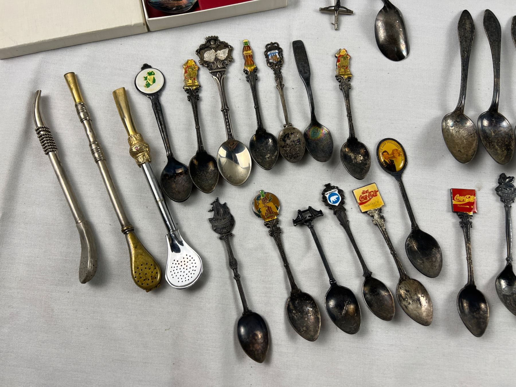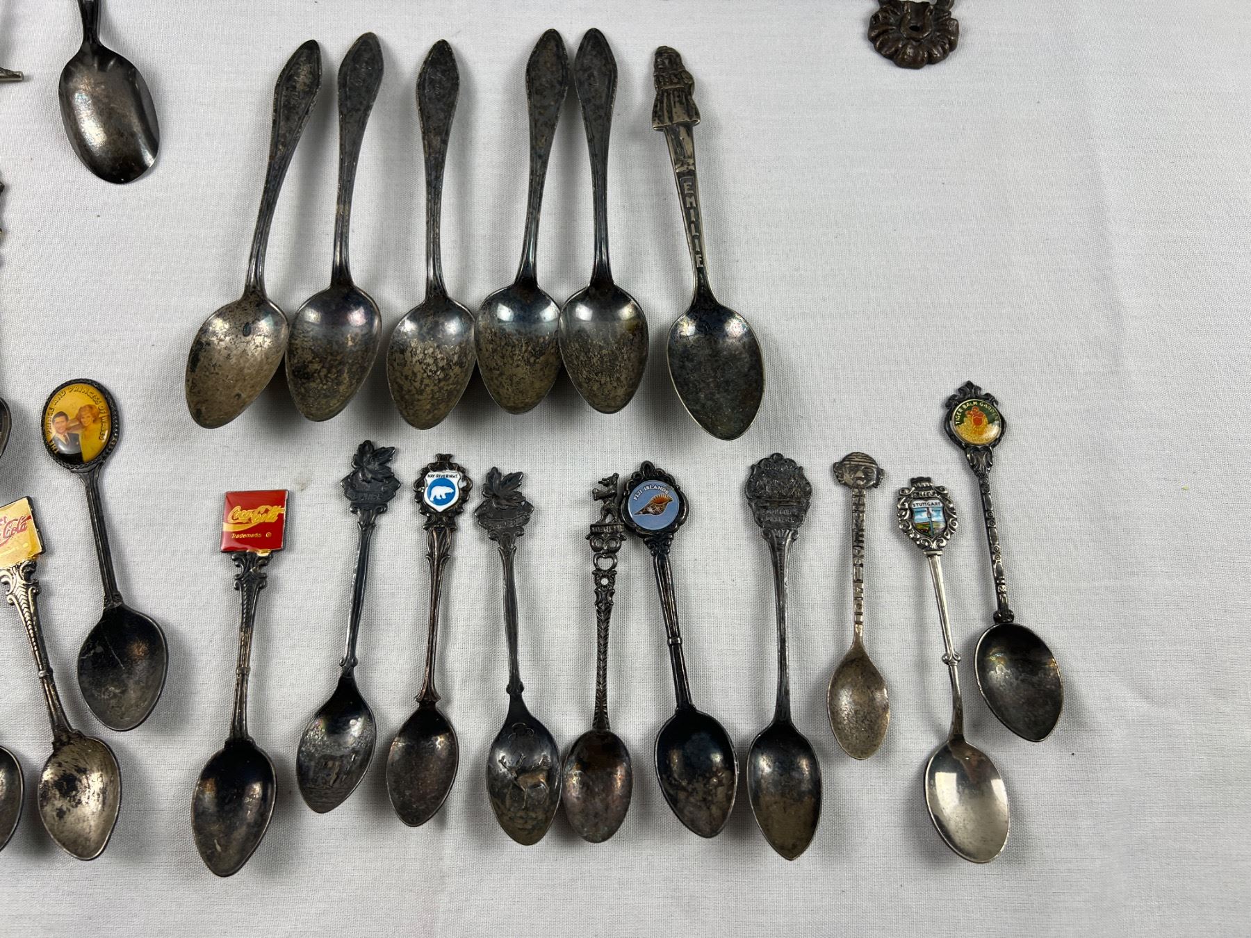 Includes two Marlboro Plate teapots By Morton Parker as well as an ice bucket (7"H), Morning Rose by Community spoons, Five "Pat 1912 Sterling" spoons, and more