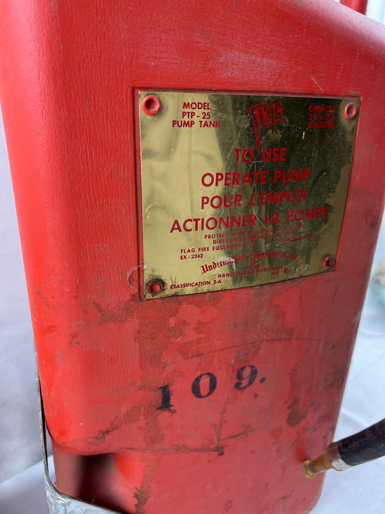 Incldues a PTP-25 Pump Tank by Underwriters Labratories (24"H x 9"L x 6"W)