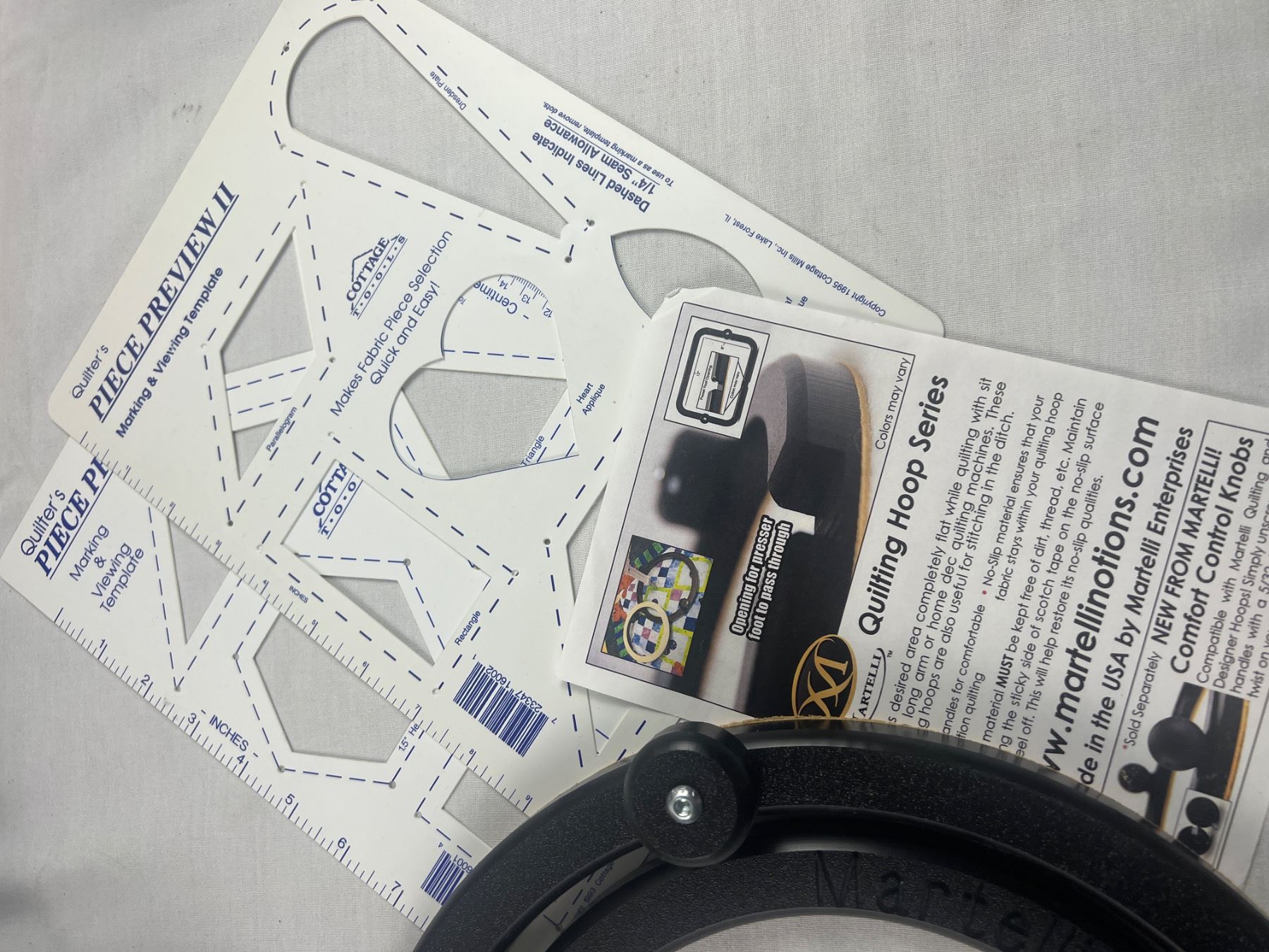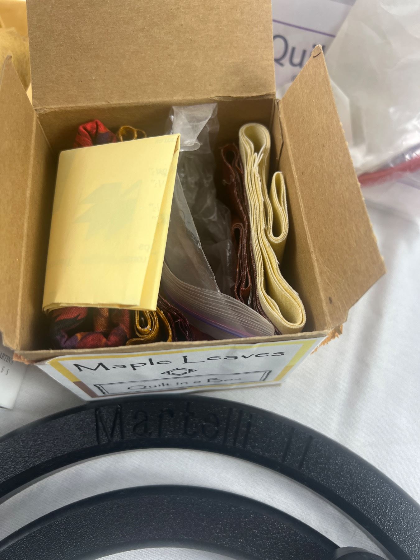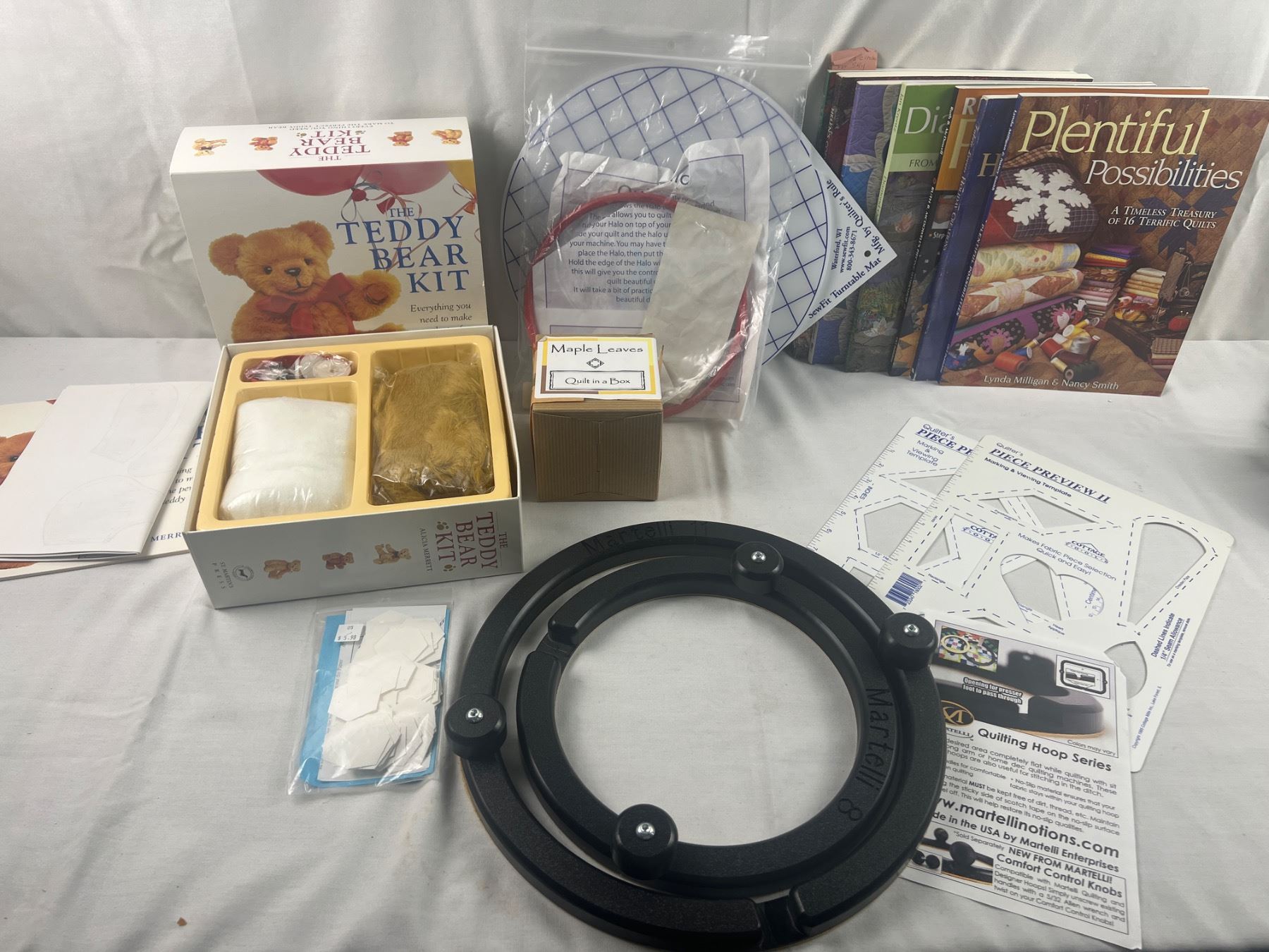 Includes a Martelli Quilting Hoop, Teddy Bear Kit, Quilt in a box, and more, open boxes
