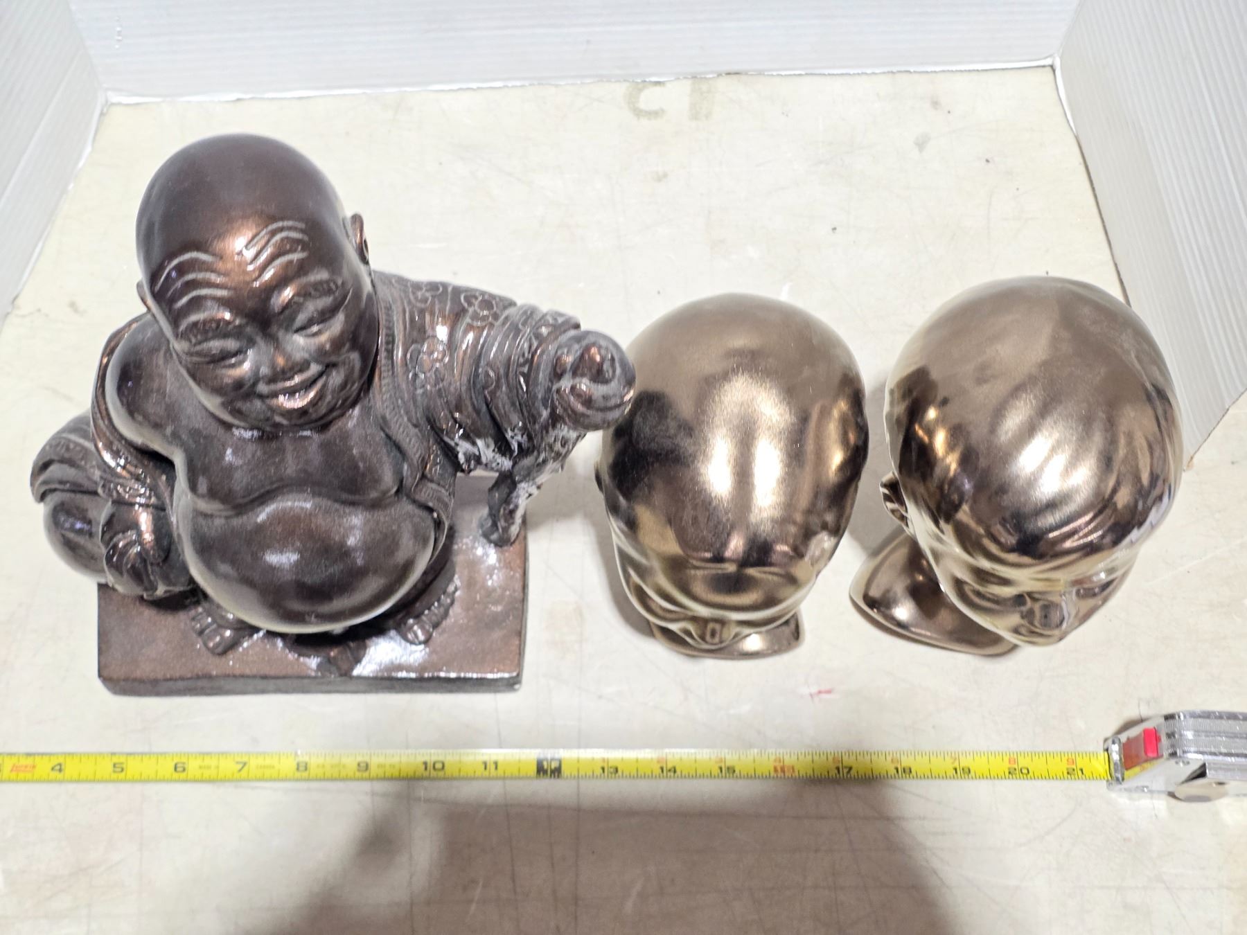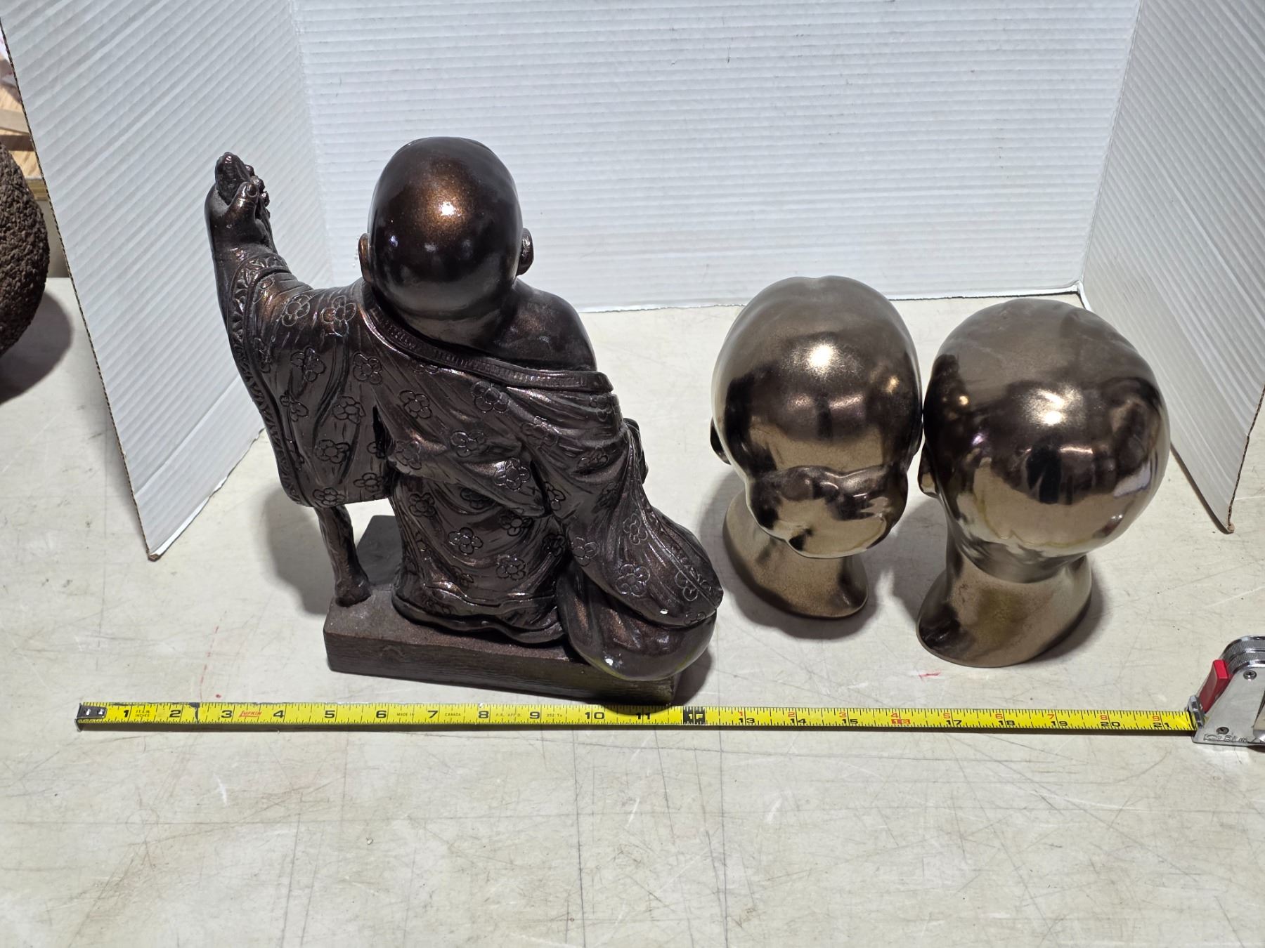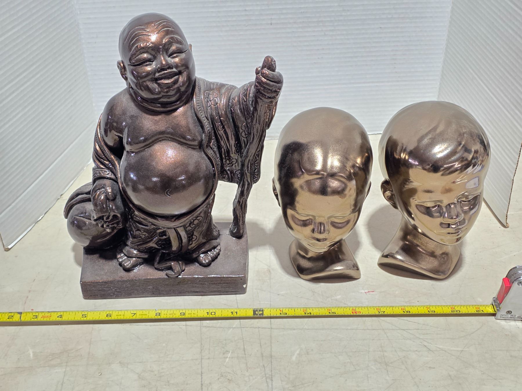 Buda statue and 2 head statues
